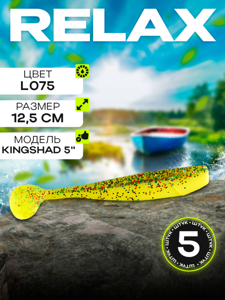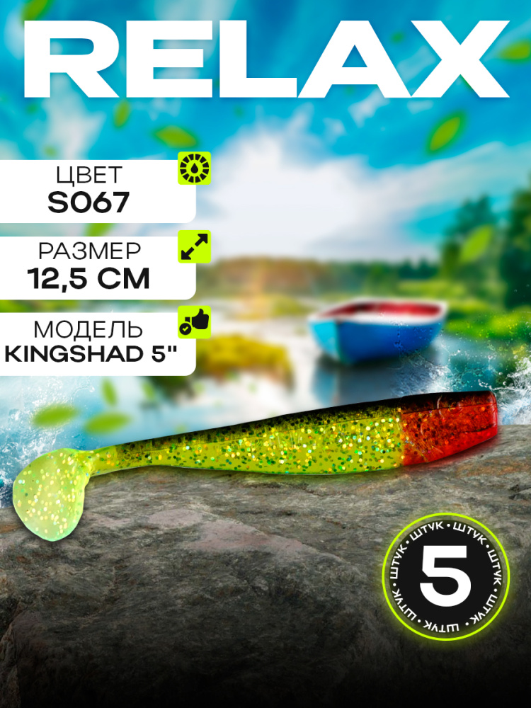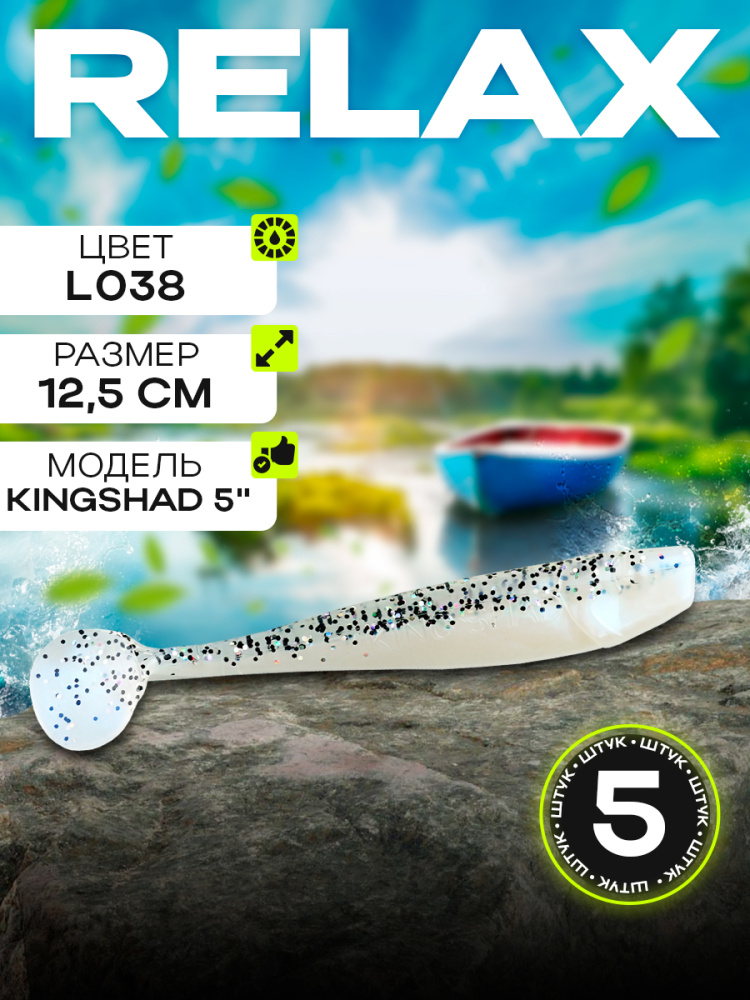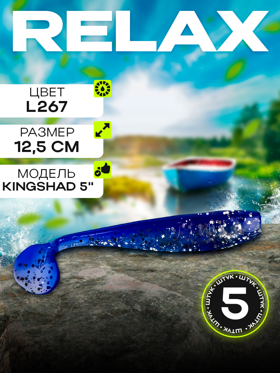 Виброхвосты Relax Kingshad 5" 12,5см цвет L267 (синий, с блестками) (5шт) (KS5)