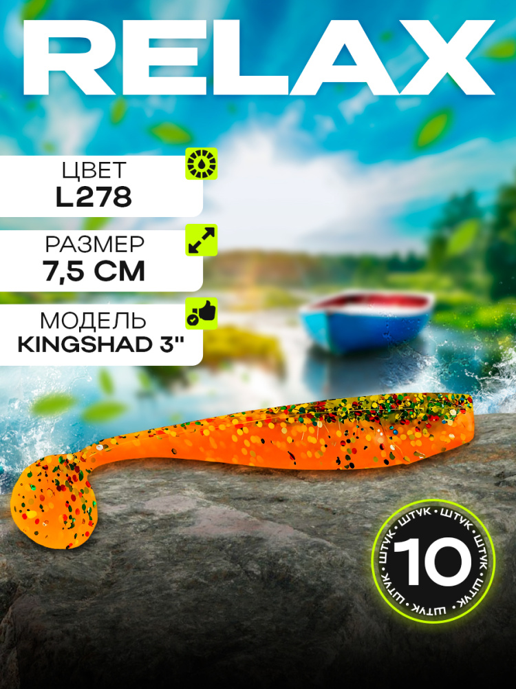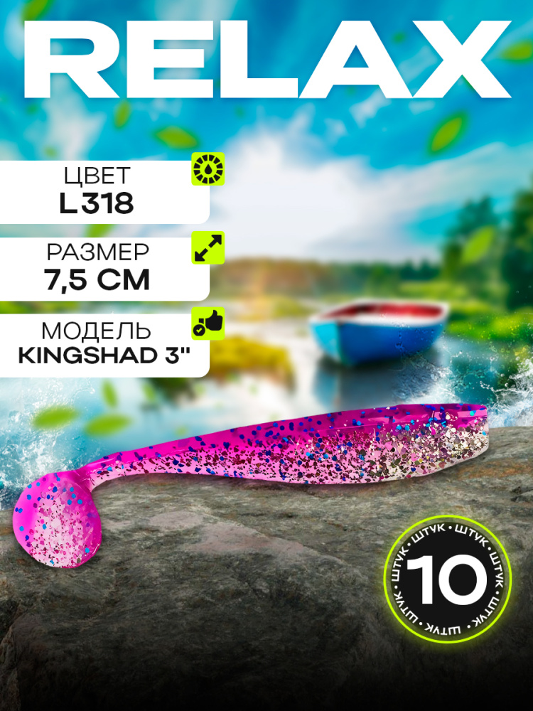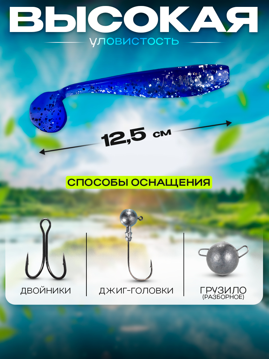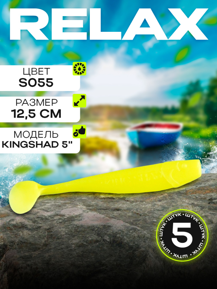 Виброхвосты Relax Kingshad 5" 12,5см цвет L267 (синий, с блестками) (5шт) (KS5)
