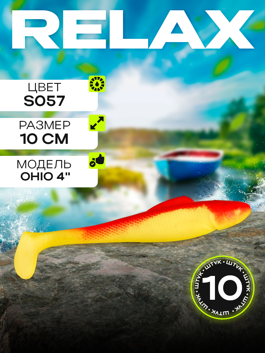 Виброхвосты Relax Ohio 4" 10см цвет S057 (желтый, красный) (10шт) (OH4)