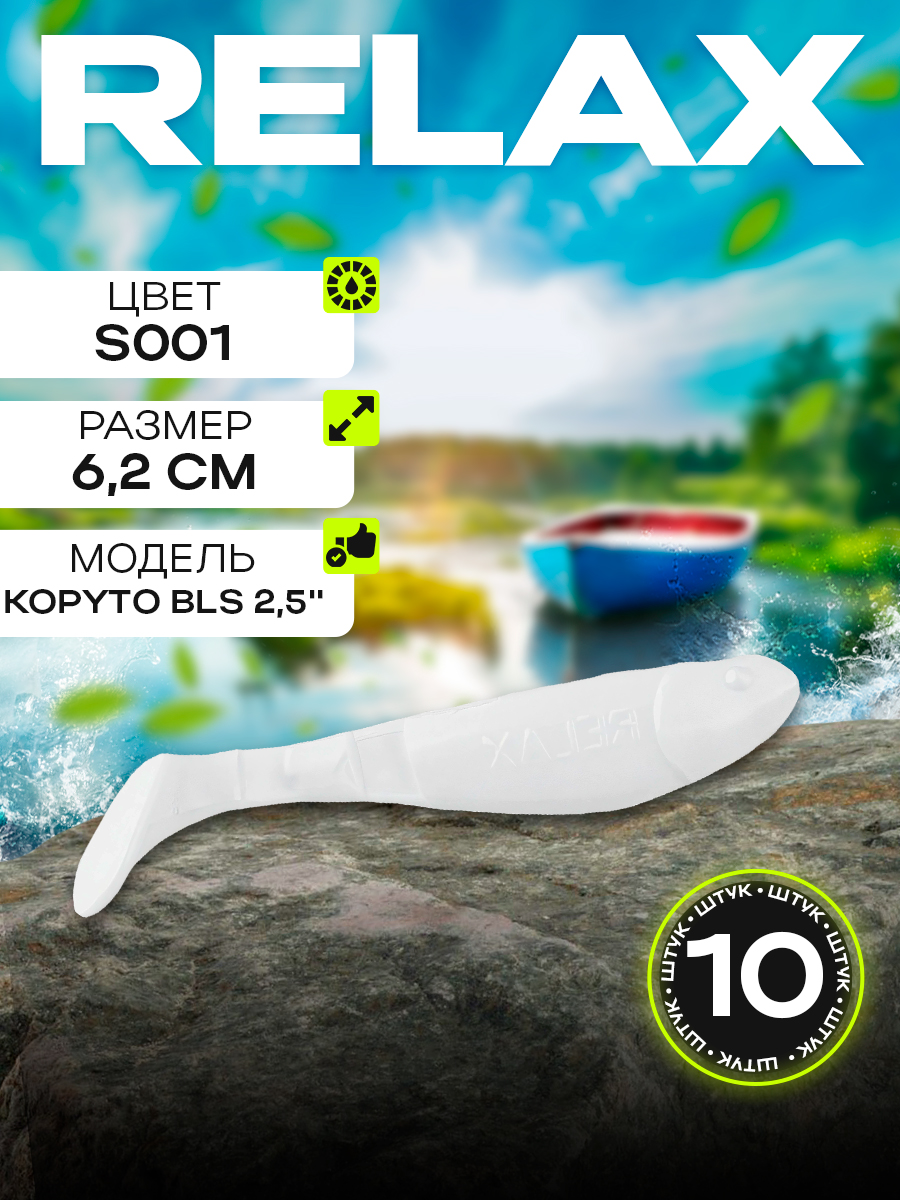 Виброхвосты Relax Kopyto BLS 2.5" 6,2см цвет S001 (белый) (10шт) (BLS25)