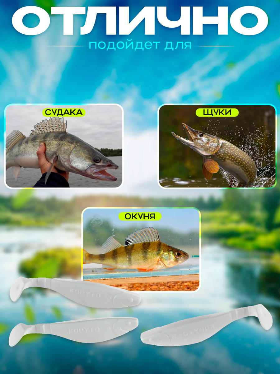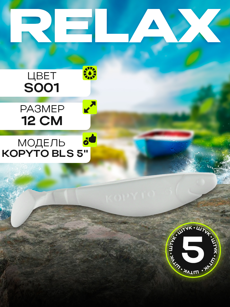 Виброхвосты Relax Kopyto BLS 5" 12см цвет S001 (белый) (5шт) (BLS5)