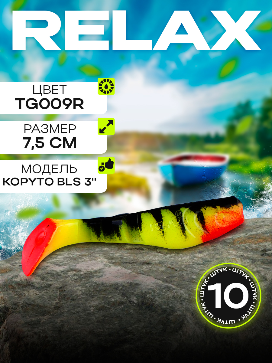 Виброхвосты Relax Kopyto BLS 3" 7,5см цвет TG009R (желтый, черный, красный) (10шт) (BLS3)