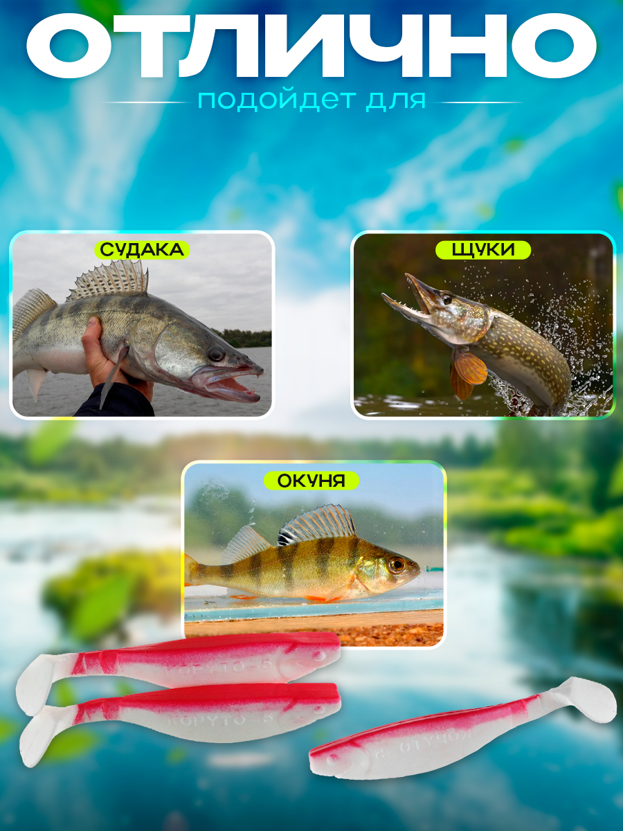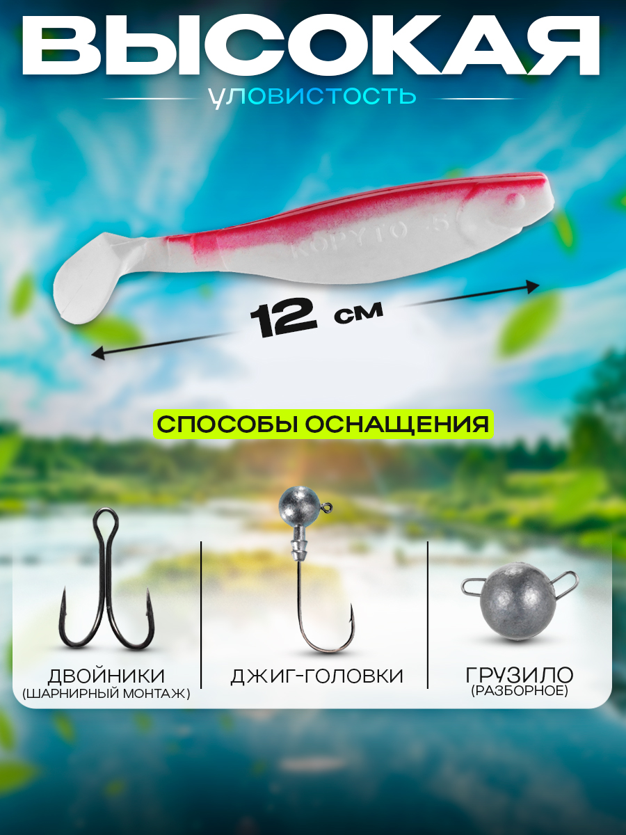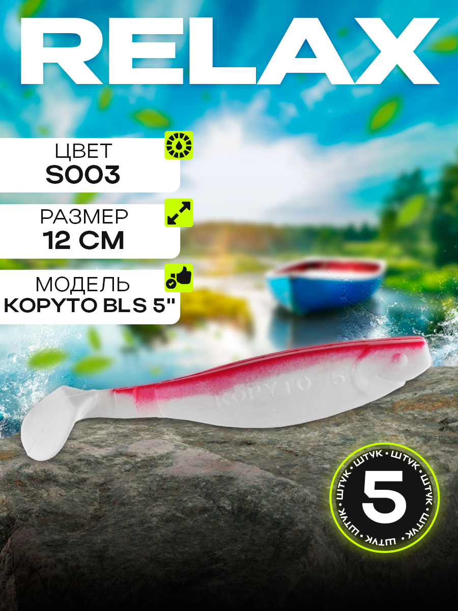 Виброхвосты Relax Kopyto BLS 5" 12см цвет S003 (белый, красный) (5шт) (BLS5)