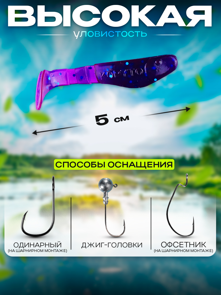 Виброхвосты Relax Kopyto BLS 2" 5см цвет S175 (лиловый, синие блестки) (15шт) (BLS2)