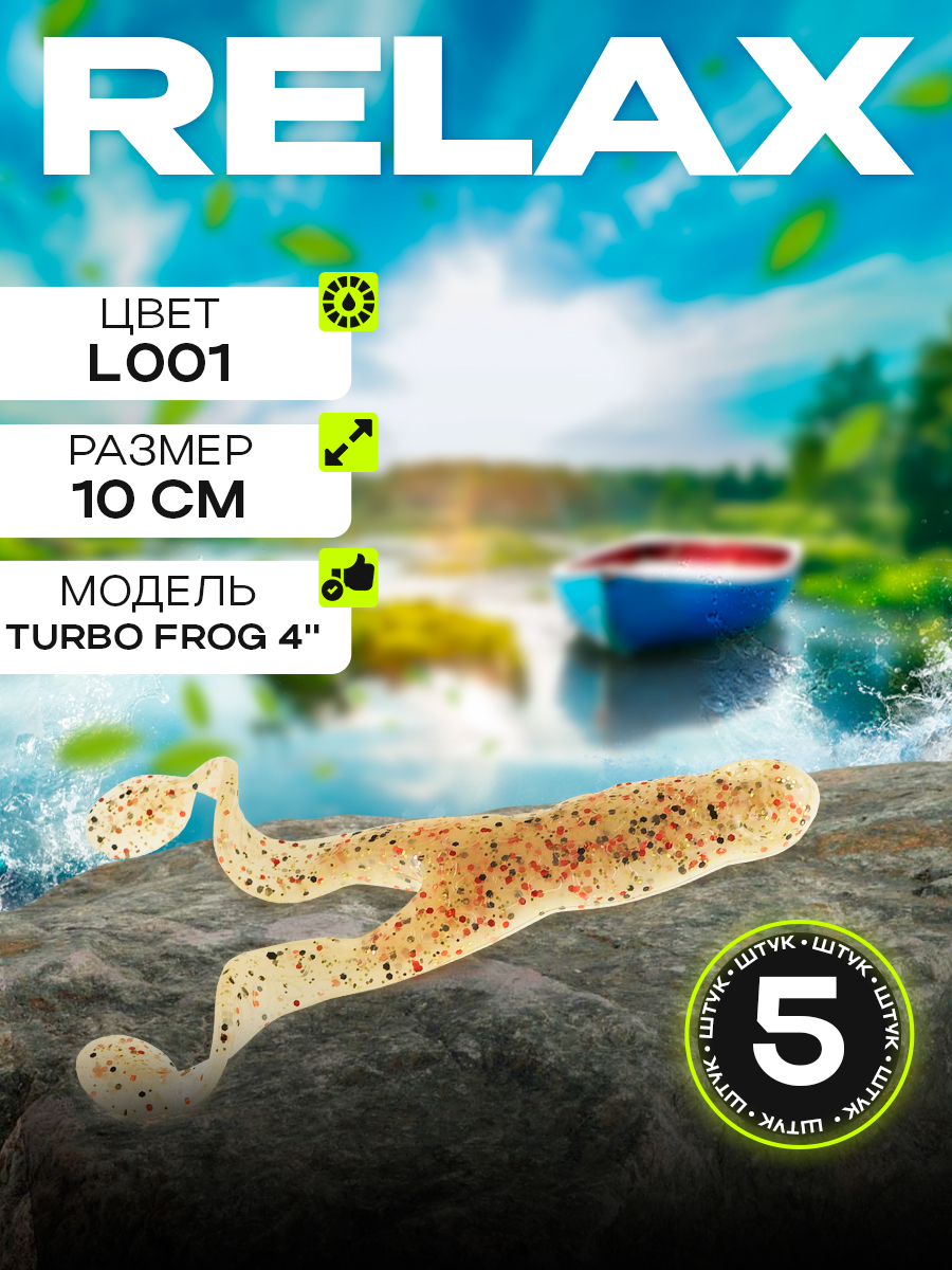 Приманки Relax Turbo Frog (лягушка) 4" 10см цвет L001 (белый, красные блестки) (5шт) (TF4)