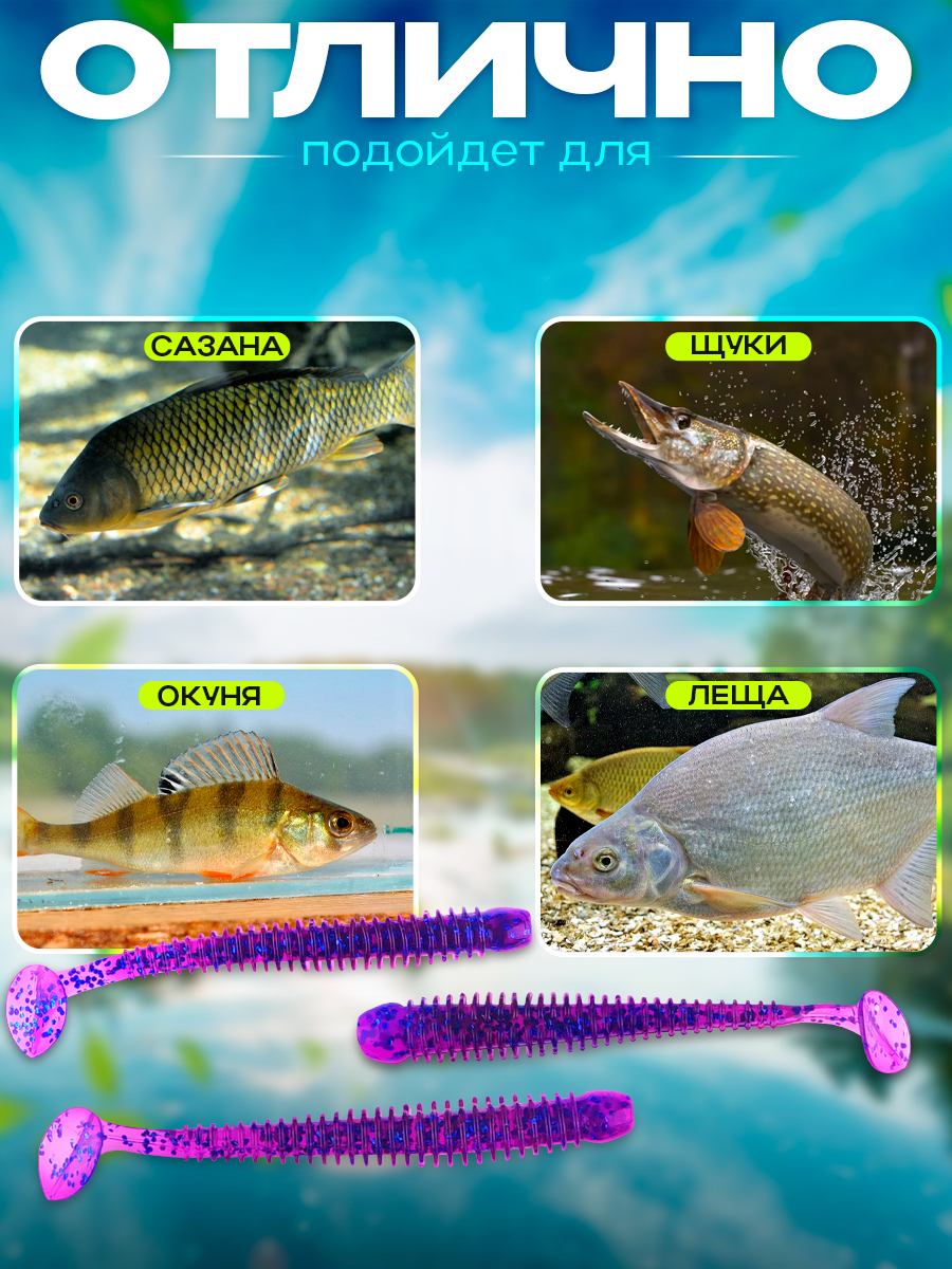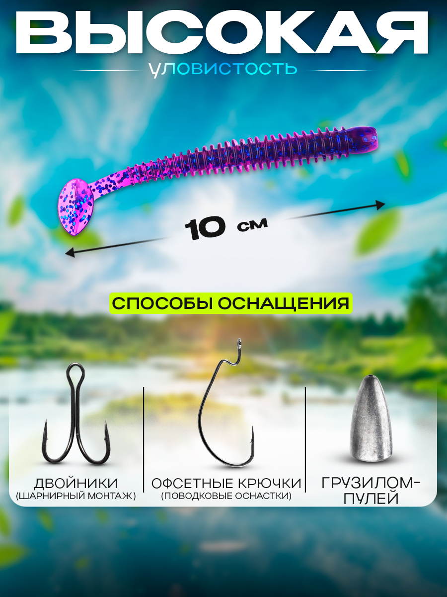 Виброхвосты Relax Texas 4" 10см цвет S225 (фиолетовый, прозрачный, синие блестки) (10шт) (TX4)