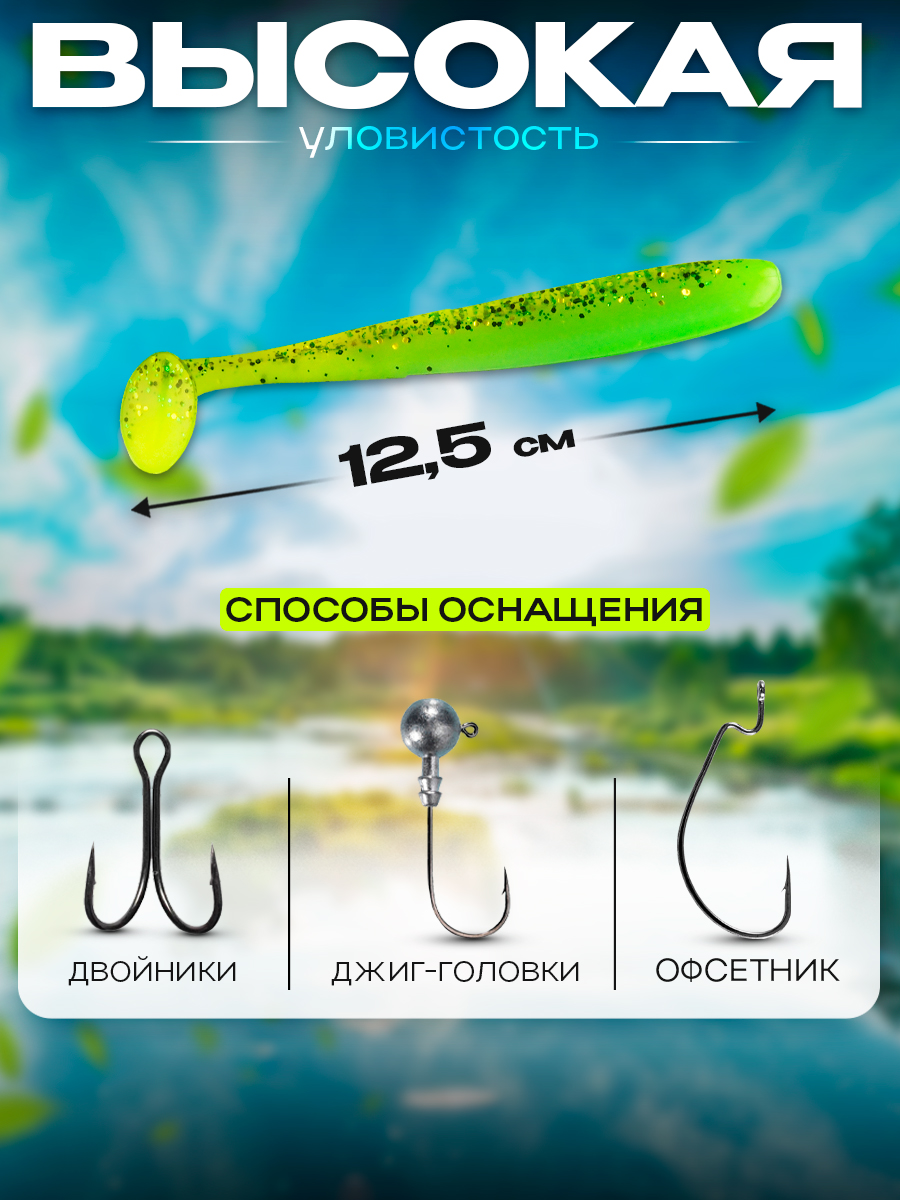 Виброхвосты Relax Bass 5" 12,5см цвет L140 (зеленый, с блестками) (5шт) (BAS5)