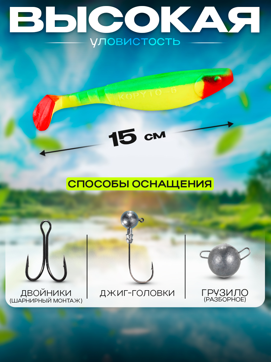 Виброхвосты Relax Kopyto BLS 6" 15см цвет S058 (желтый, зеленый, красный)R (5шт) (BLS6)