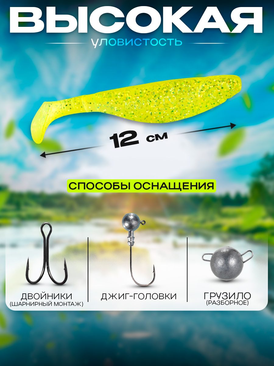 Виброхвосты Relax Kopyto BLS 5" 12см цвет S203 (желтый, прозрачный, с блестками) (5шт) (BLS5)