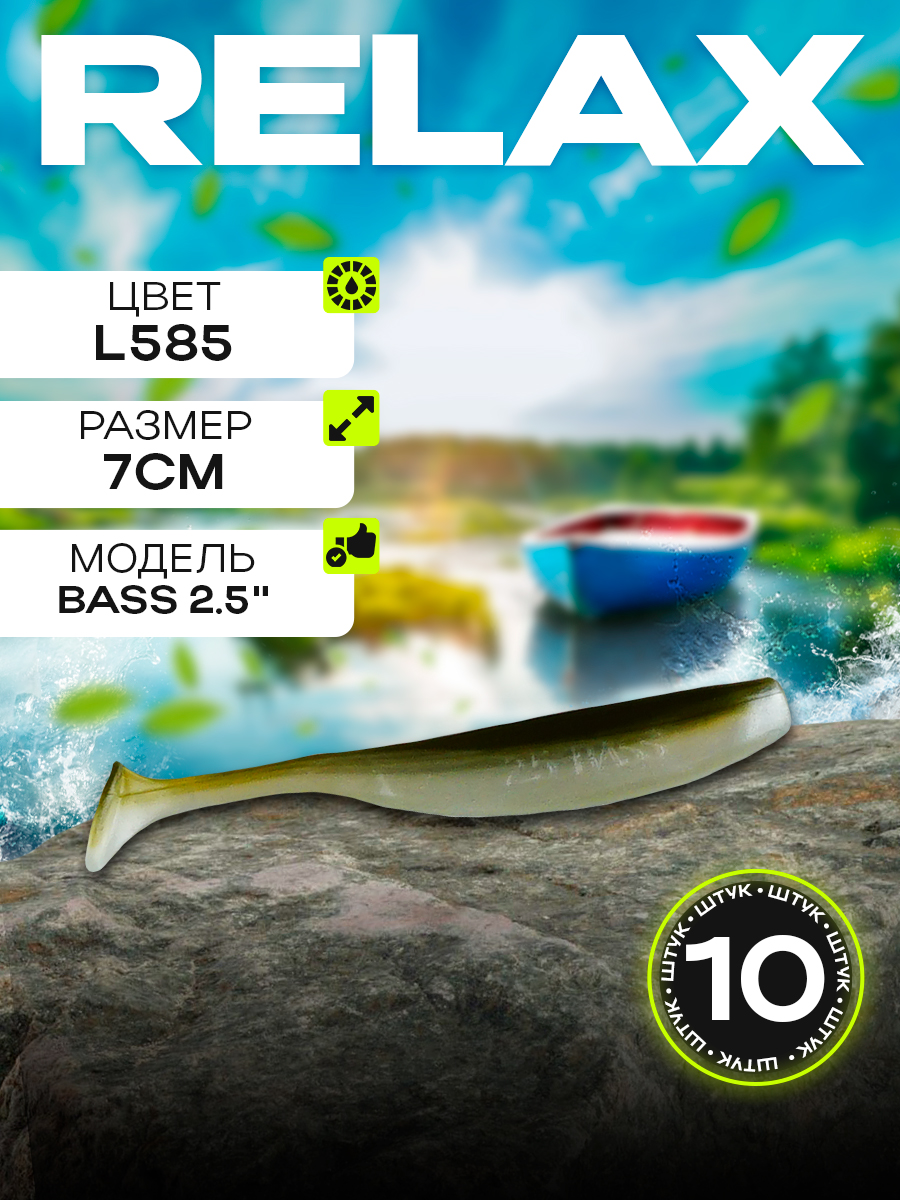 Виброхвосты Relax Bass 2.5" 7см цвет L585 (перламутровый, болотный) (10шт) (BAS25)