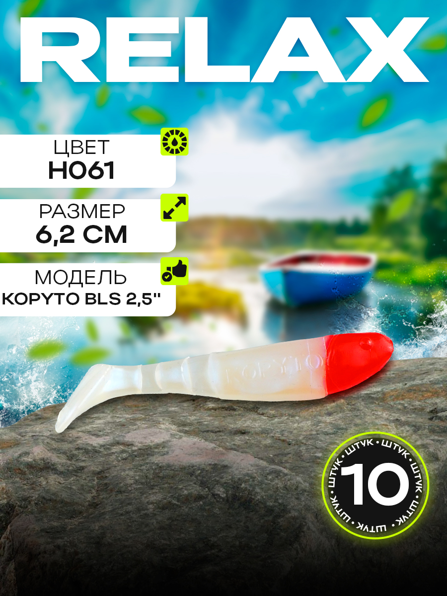 Виброхвосты Relax Kopyto BLS 2.5" 6,2см цвет H061 (перламутровый, красный) (10шт) (BLS25)