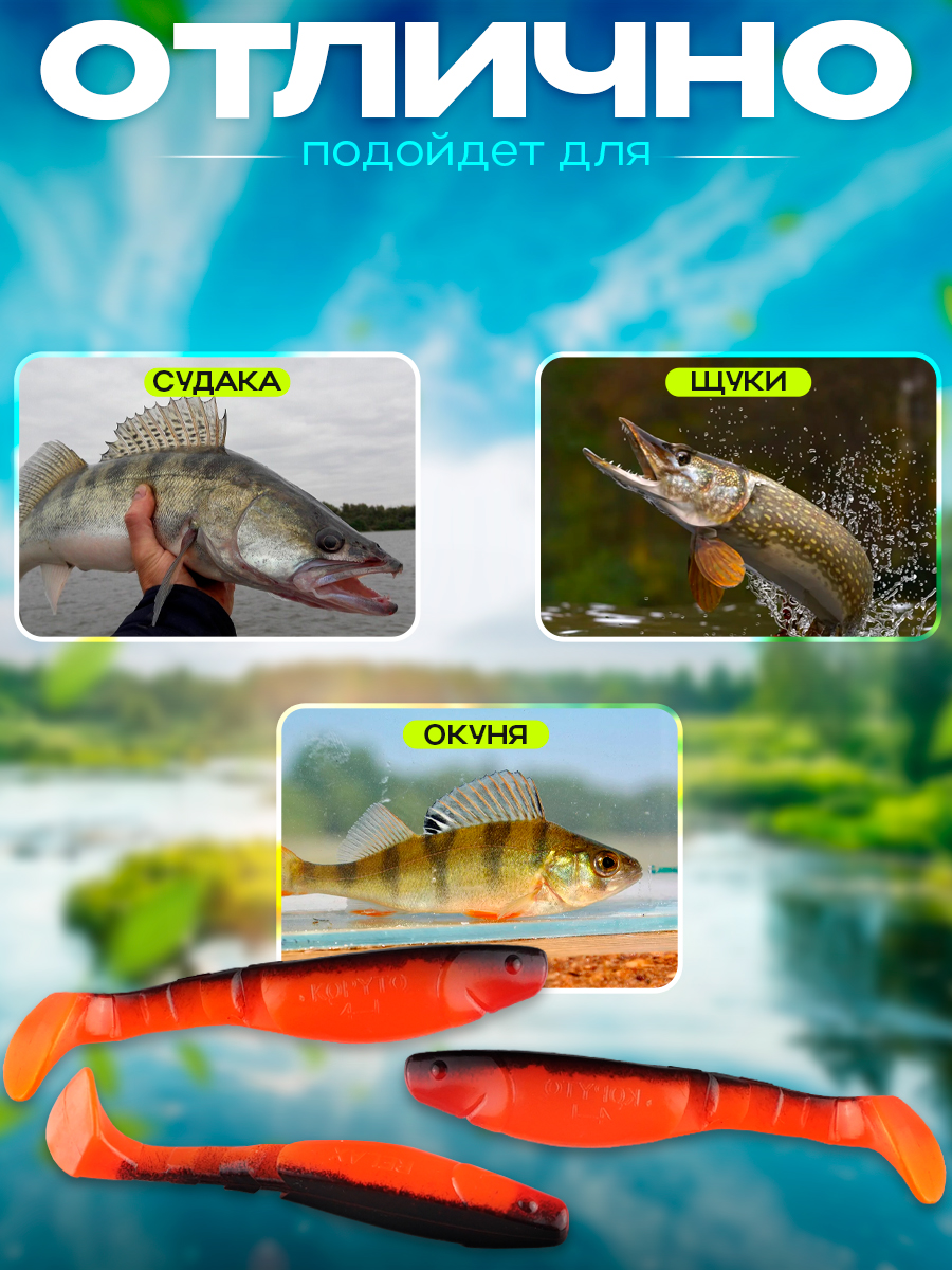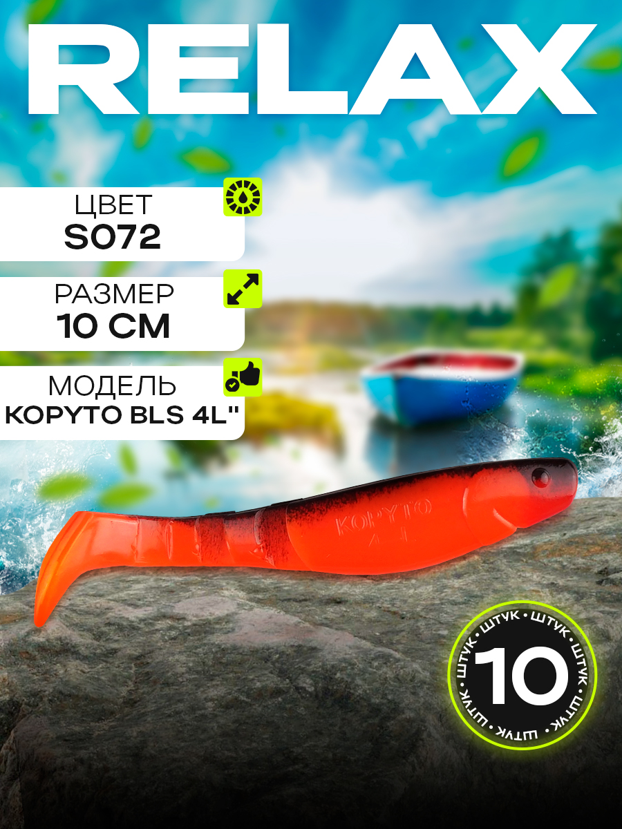 Виброхвосты Relax Kopyto BLS 4L" 10см цвет S072 (красный, черный) (10шт) (BLS4L)