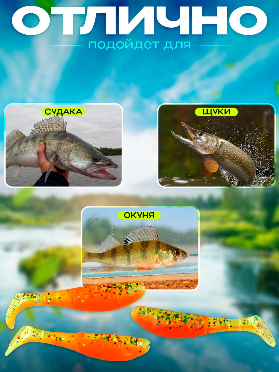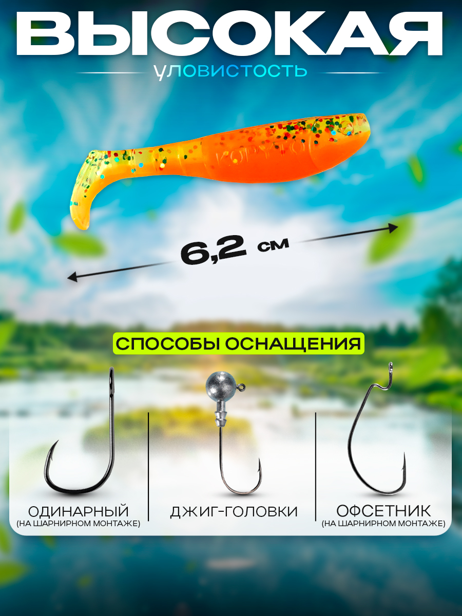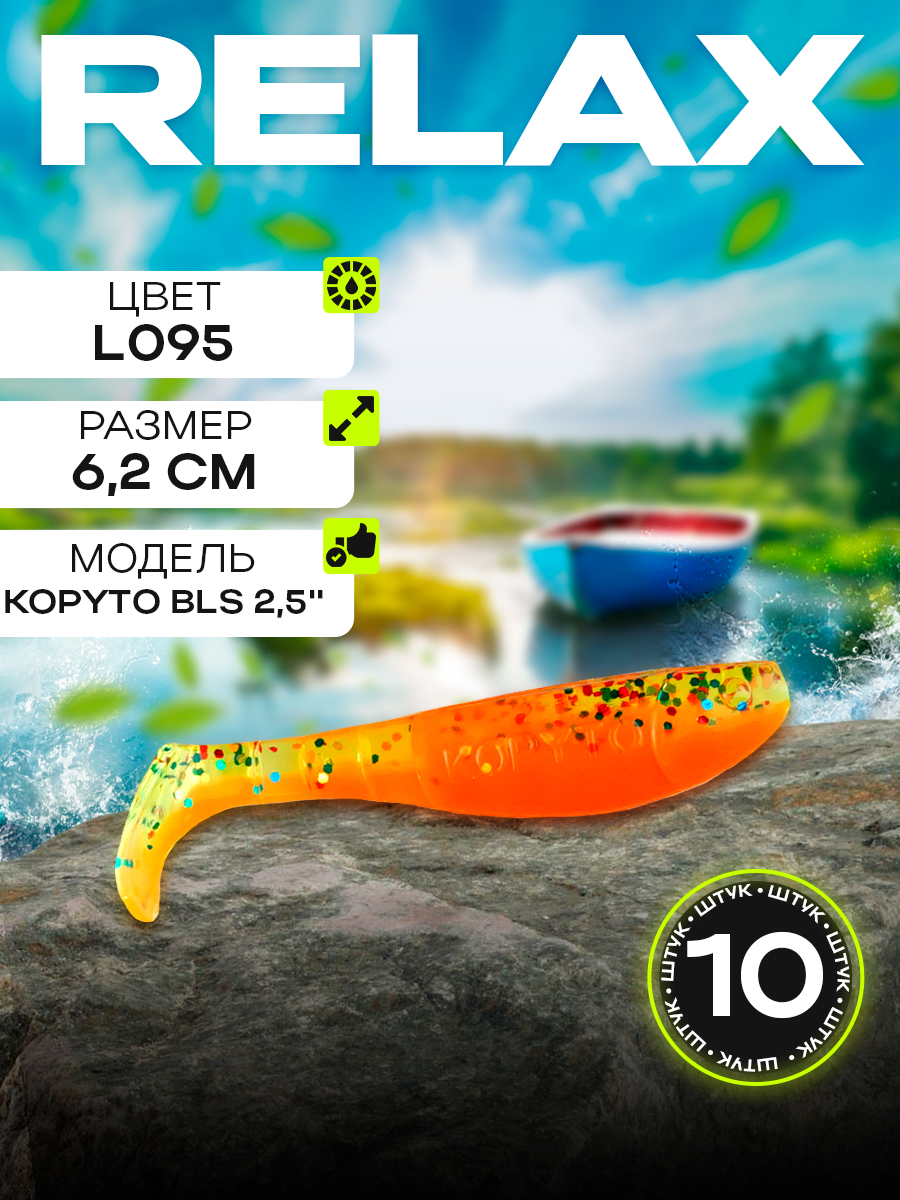 Виброхвосты Relax Kopyto BLS 2.5" 6,2см цвет L095 (морковный, с блестками) (10шт) (BLS25)