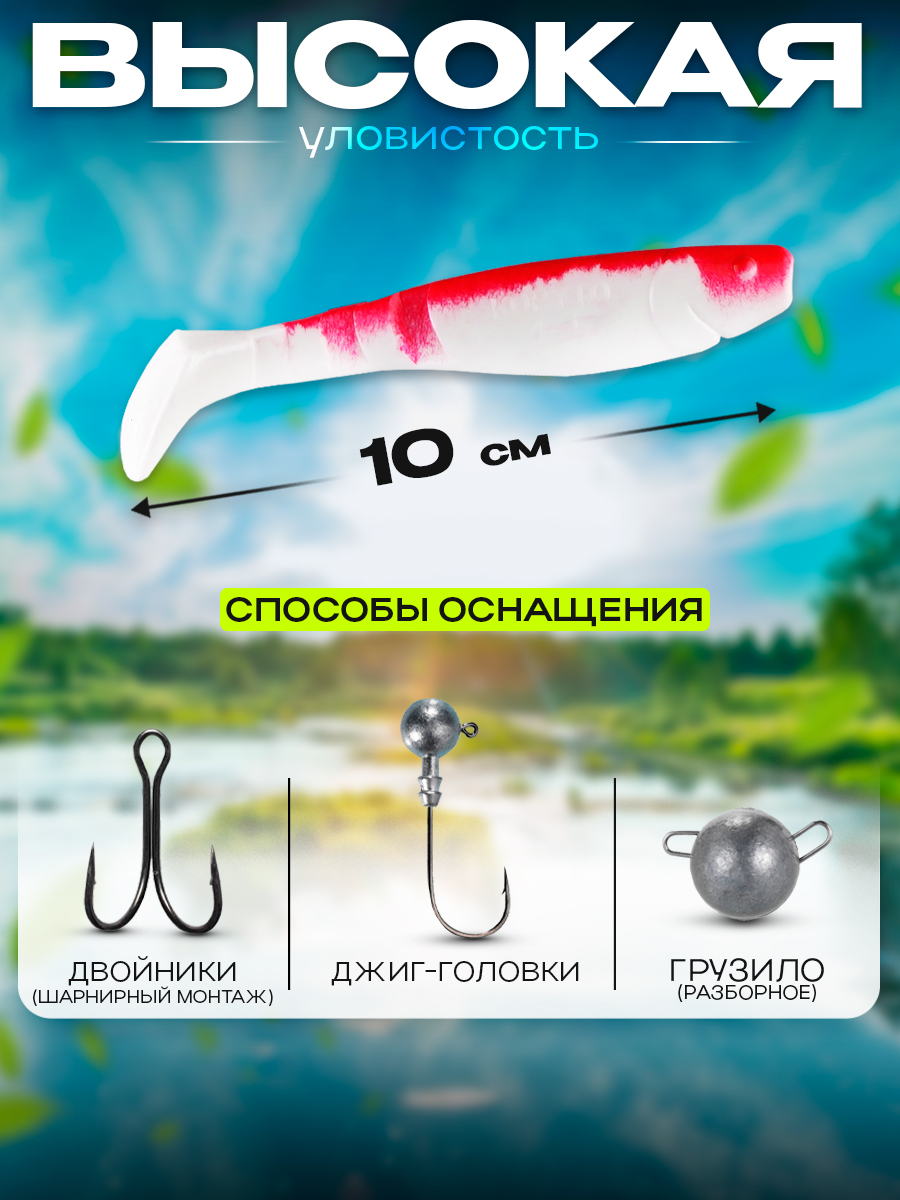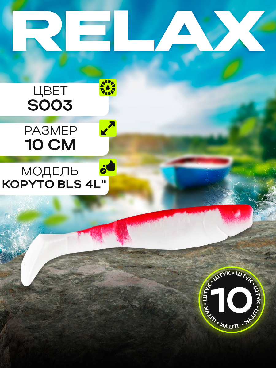 Виброхвосты Relax Kopyto BLS 4L" 10см цвет S003 (белый, красный) (10шт) (BLS4L)