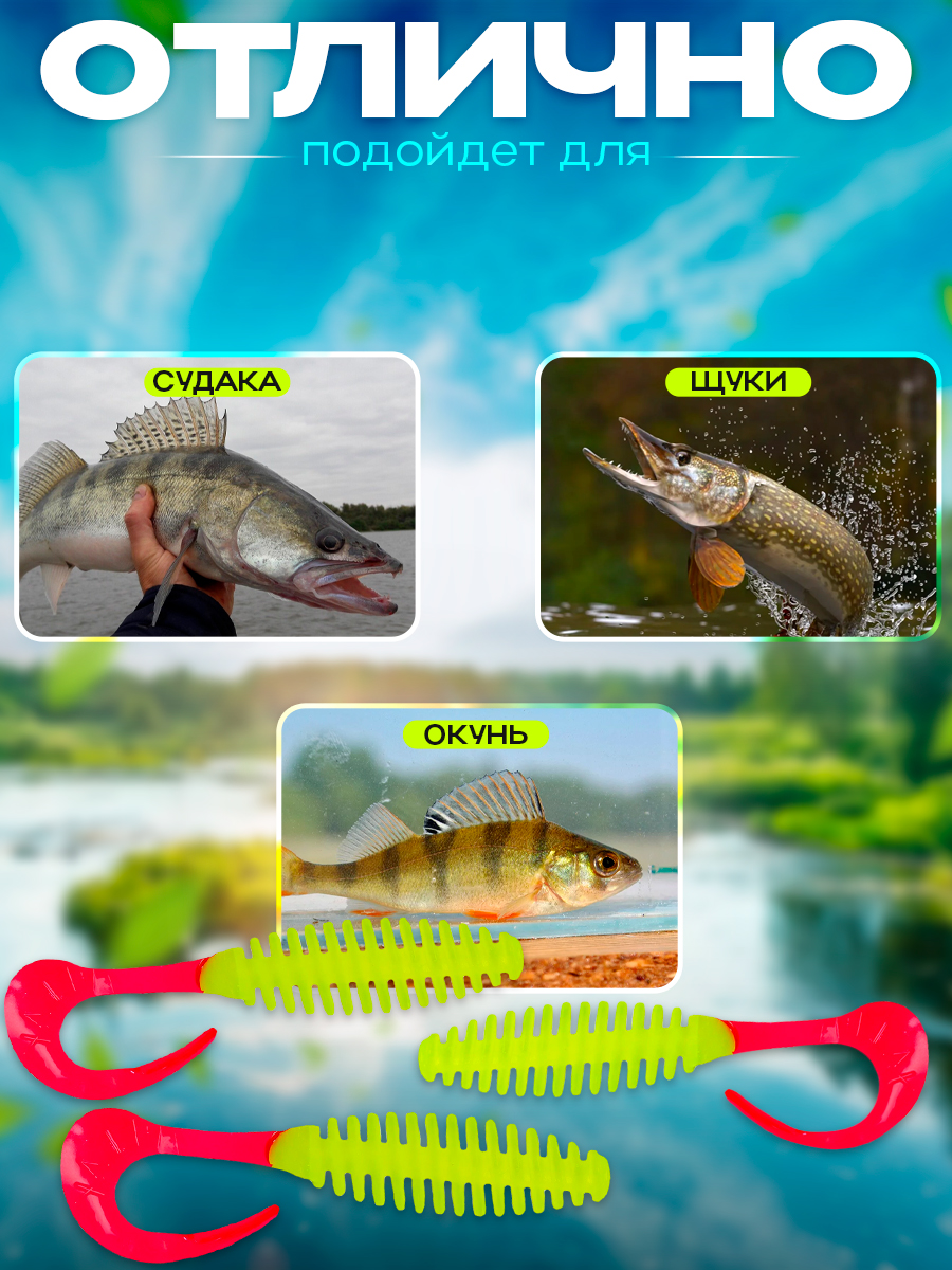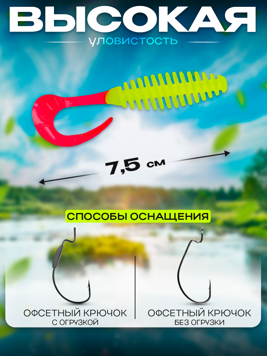 Твистеры Relax Turbo 3" 7,5см цвет TS097 (салатовый, красный) (15шт) (TRT3)