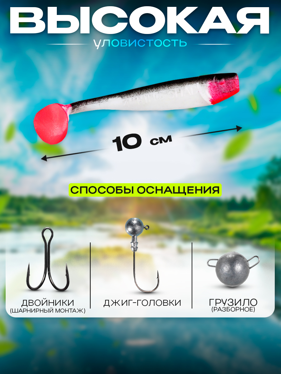 Виброхвосты Relax Kingshad 4" 10см цвет S002R (белый, черный, красный) (10шт) (KS4)
