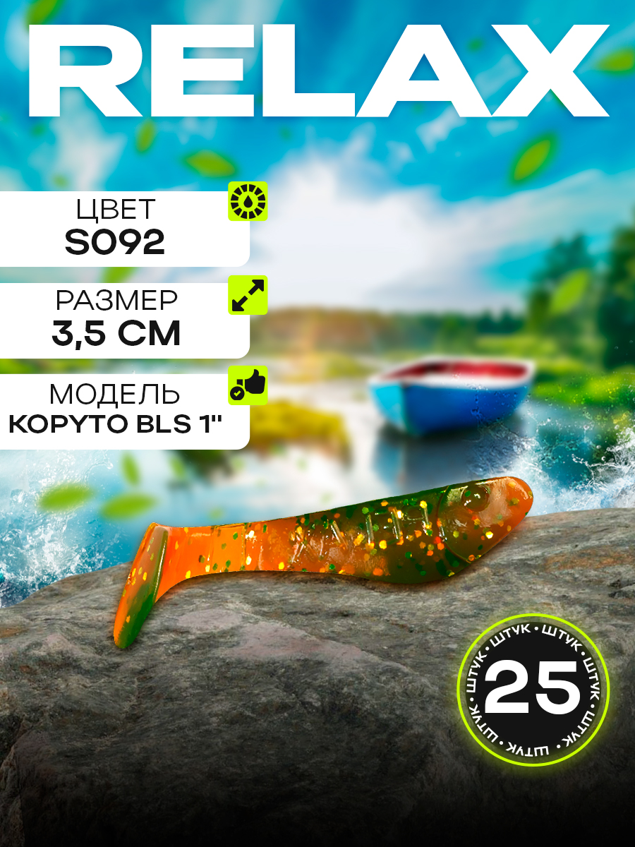 Виброхвосты Relax Kopyto BLS 1" 3,5см цвет S092 (машинное масло, прозрачный, с блестками) (25шт) (BLS1)