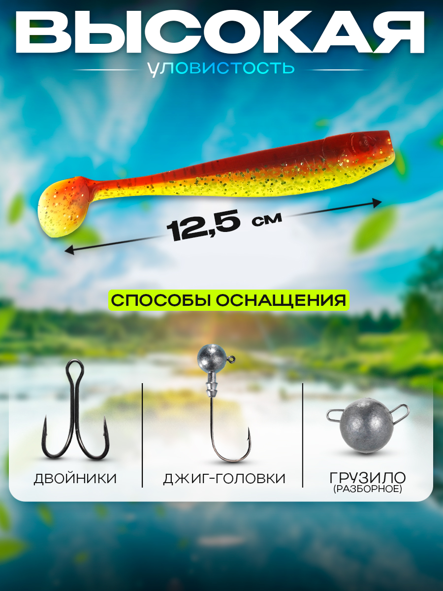 Виброхвосты Relax Kingshad 5" 12,5см цвет L052 (желтый, оранжевый, зеленые блестки) (5шт) (KS5)