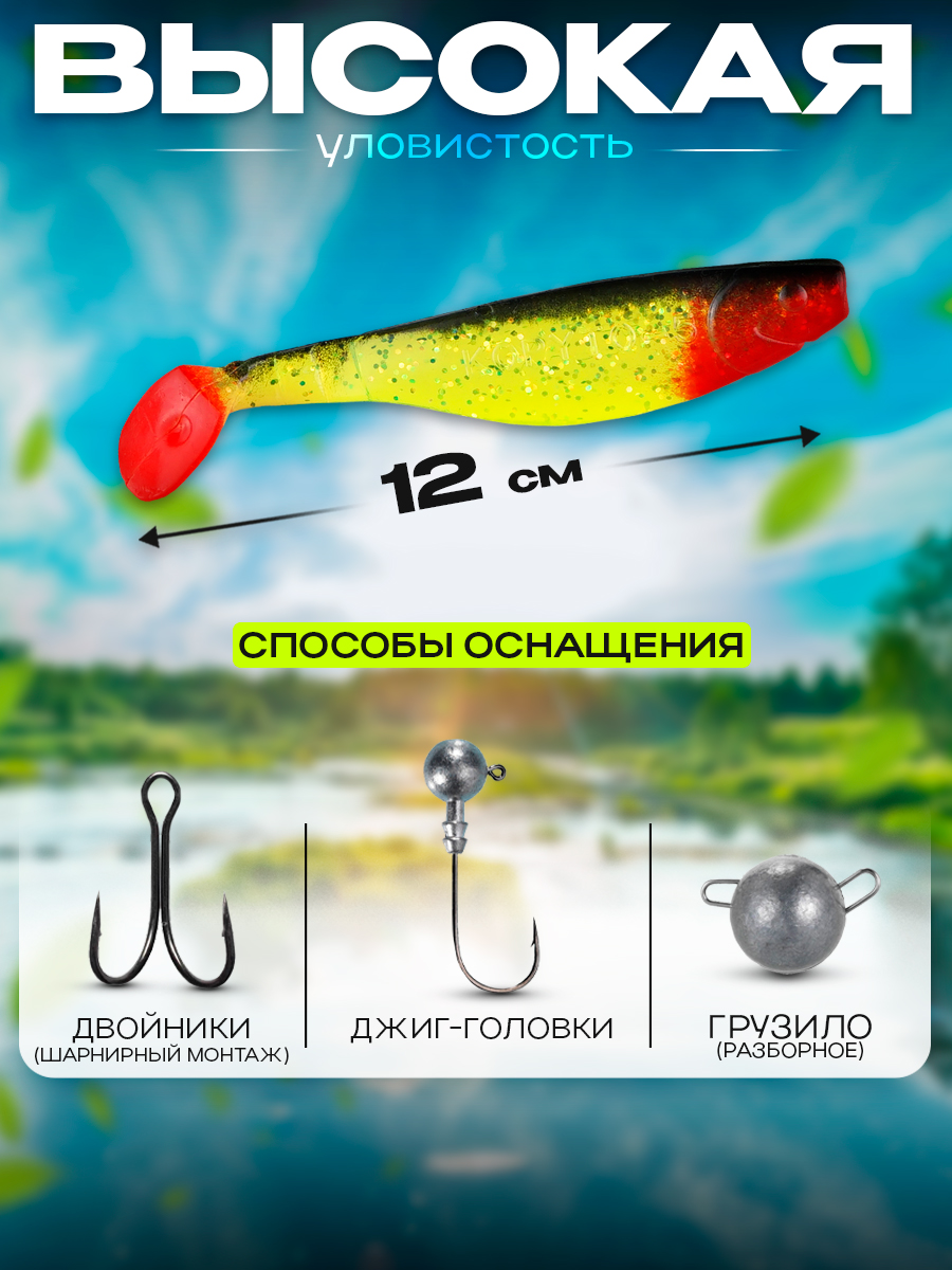 Виброхвосты Relax Kopyto BLS 5" 12см цвет S067R (желтый, черный, красный, прозрачный, с блестками) (5шт) (BLS5)