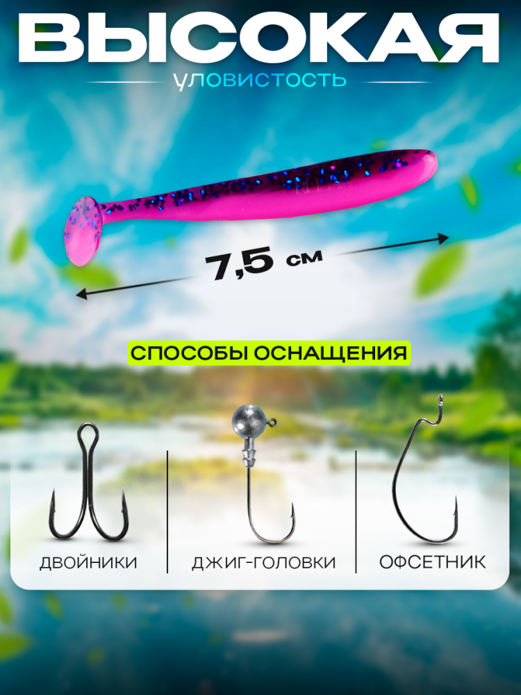Виброхвосты Relax Bass 2.5" 7см цвет L320 (прозрачный, лиловый, синие и красные блестки) (10шт) (BAS