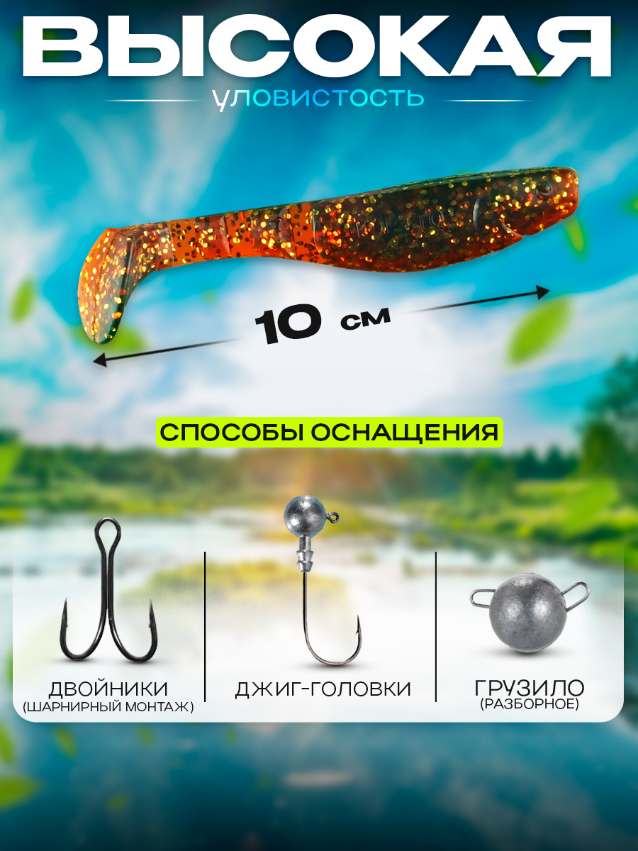 Виброхвосты Relax Kopyto BLS 4L" 10см цвет S092 (машинное масло, прозрачный, с блестками) (10шт) (BLS4L)