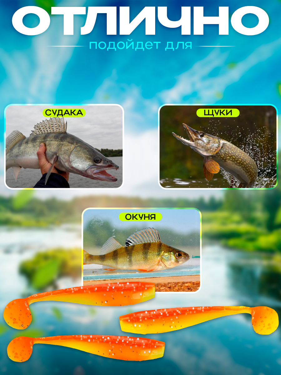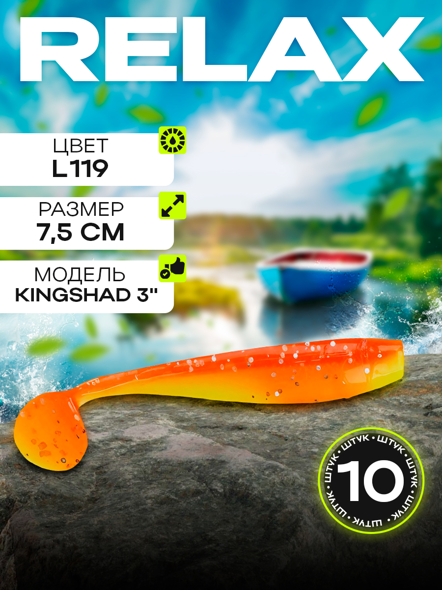 Виброхвосты Relax Kingshad 3" 7,5см цвет L119 (желтый, оранжевый, с блестками) (10шт) (KS3)