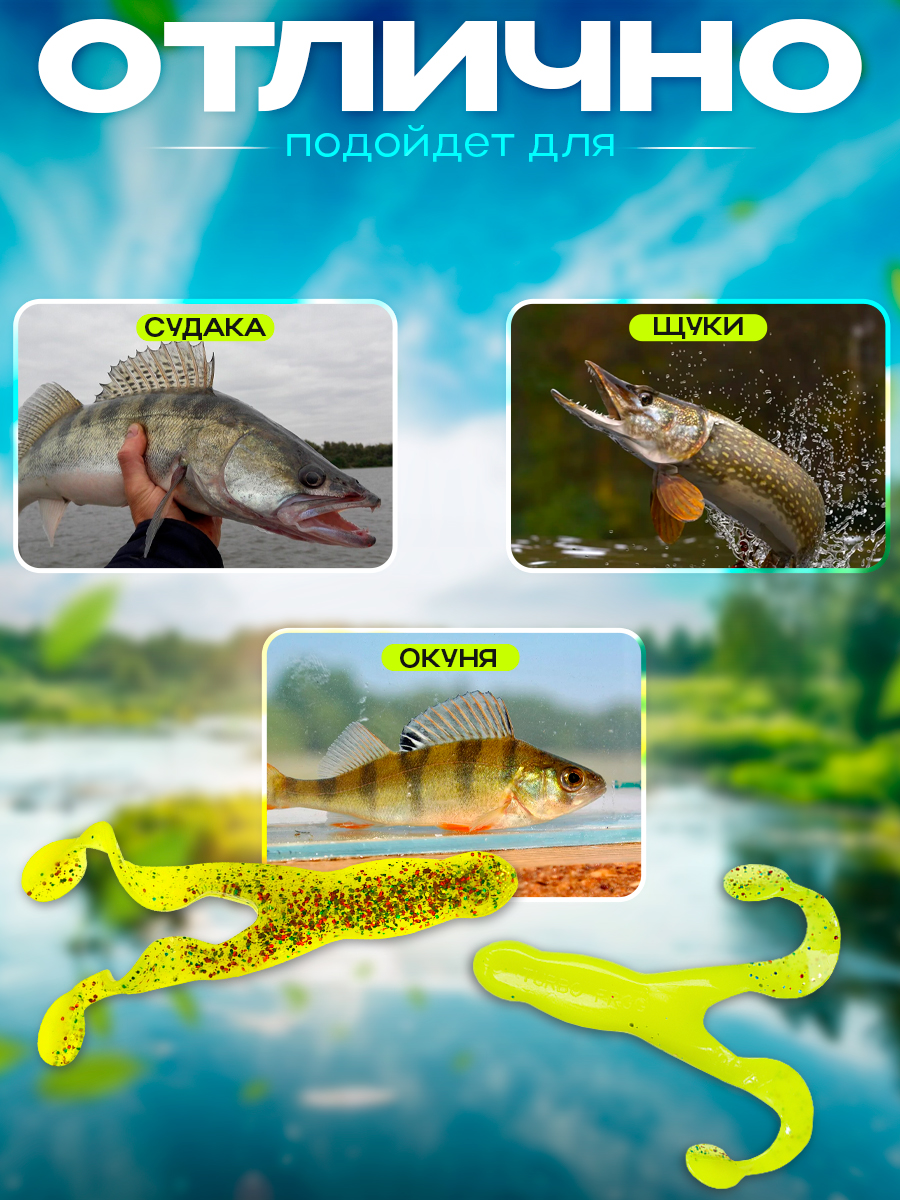 Приманки Relax Turbo Frog (лягушка) 4" 10см цвет L075 (зеленый, с блестками) (5шт) (TF4)
