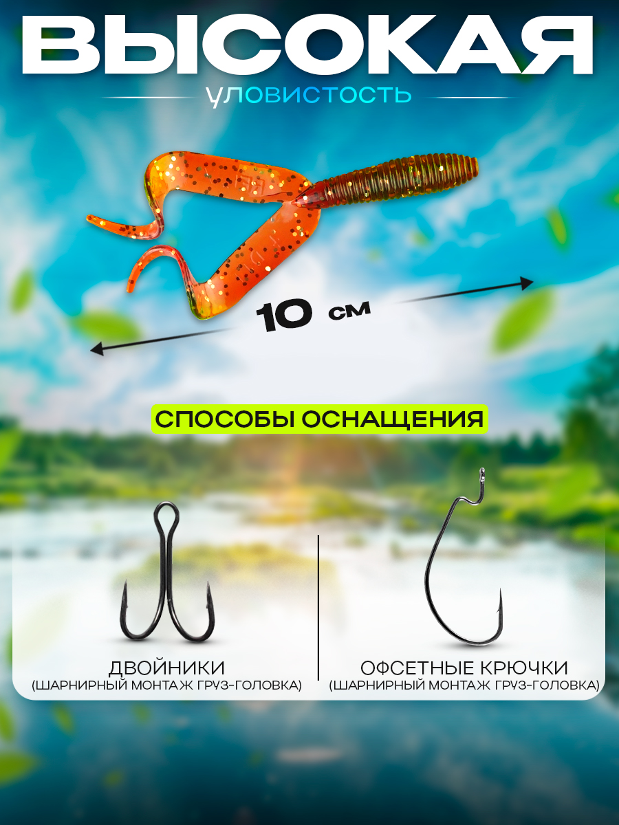 Твистеры Relax DTT 4" 10см цвет TS033 (машинное масло, с блестками) (10шт) (DTT4)