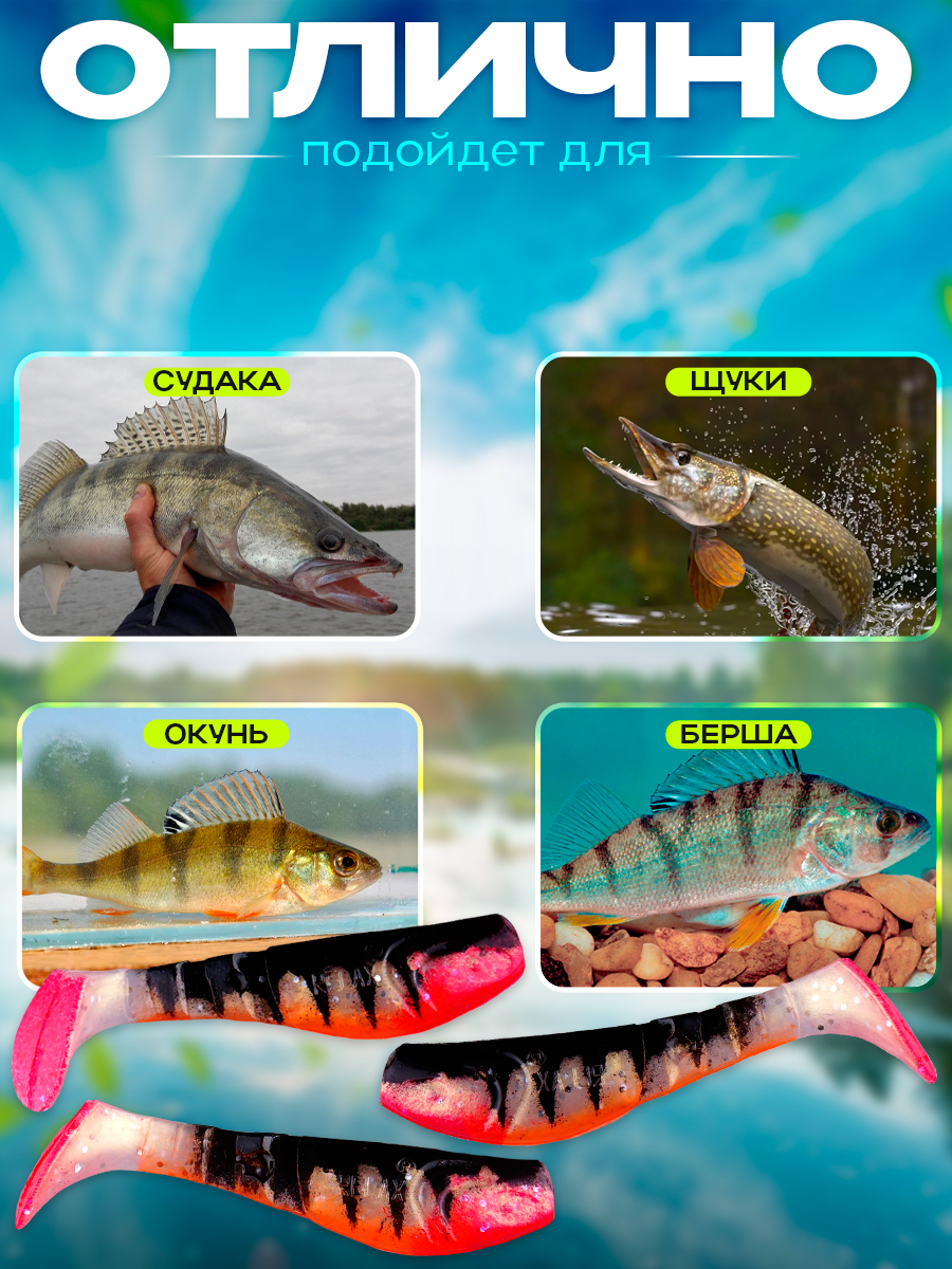 Виброхвосты Relax Kopyto BLS 3" 7,5см цвет TG123ORR (красный, черный, перламутровый, розовый) (10шт) (BLS3)