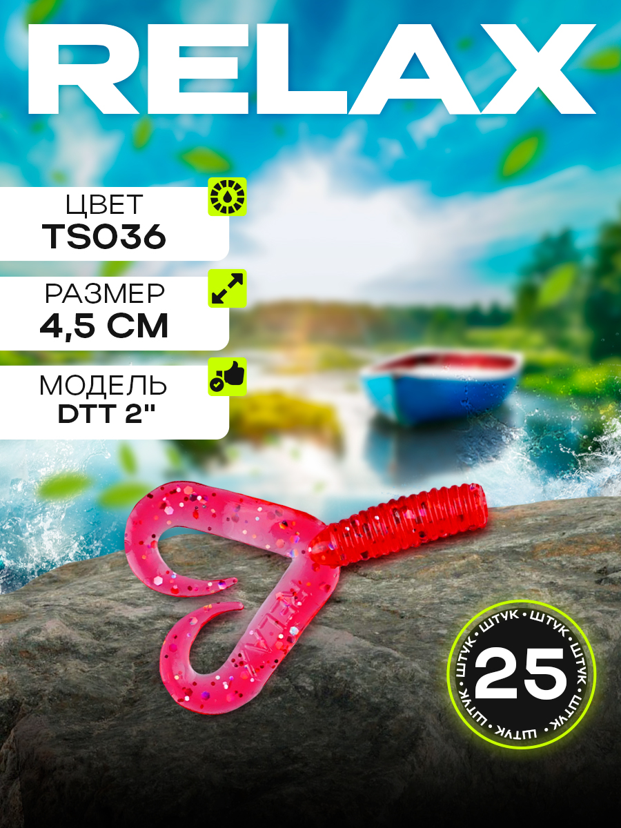 Твистеры Relax DTT 2" 4,5см цвет TS036 (красный с блестками) (25шт) (DTT2)