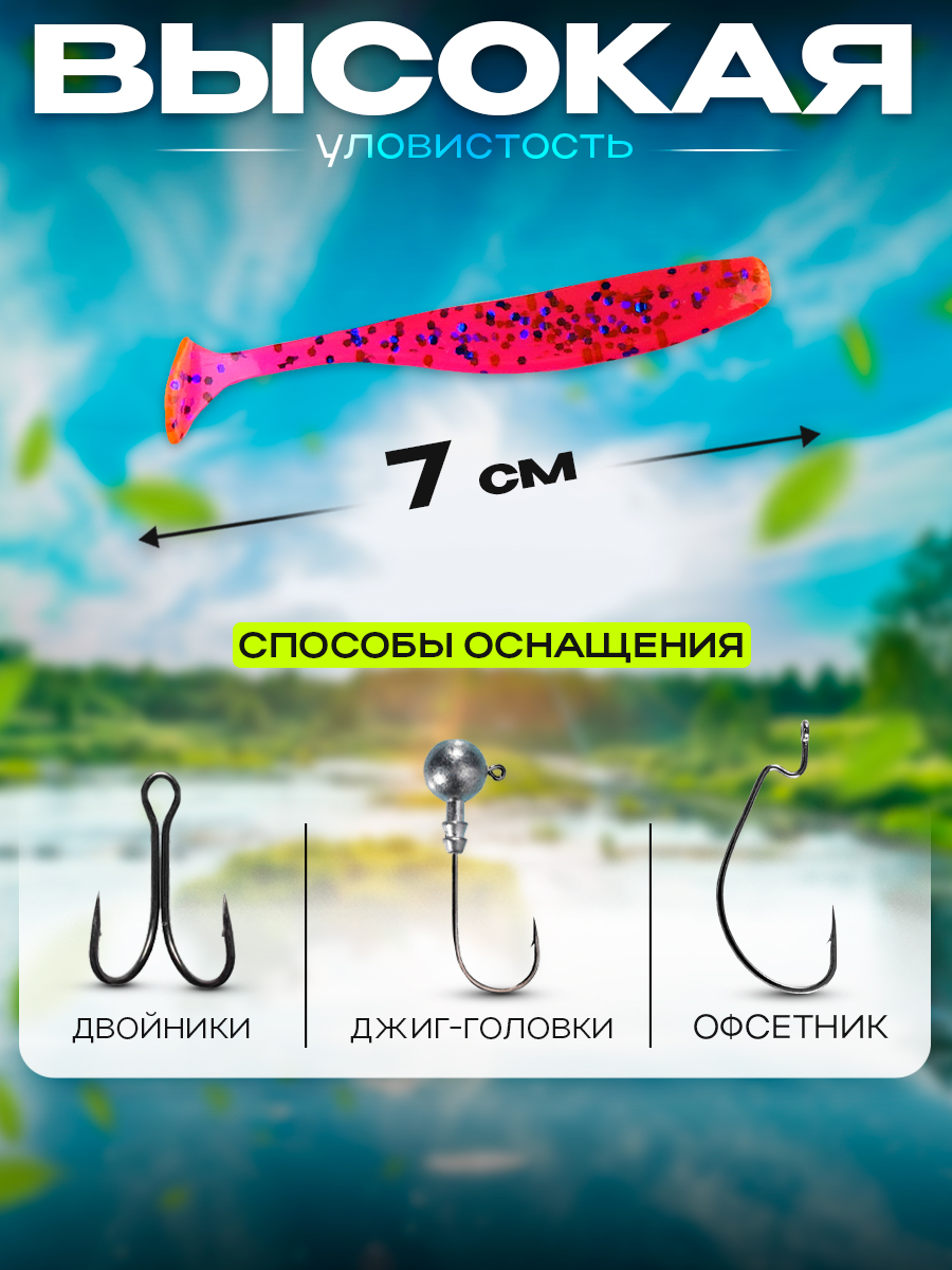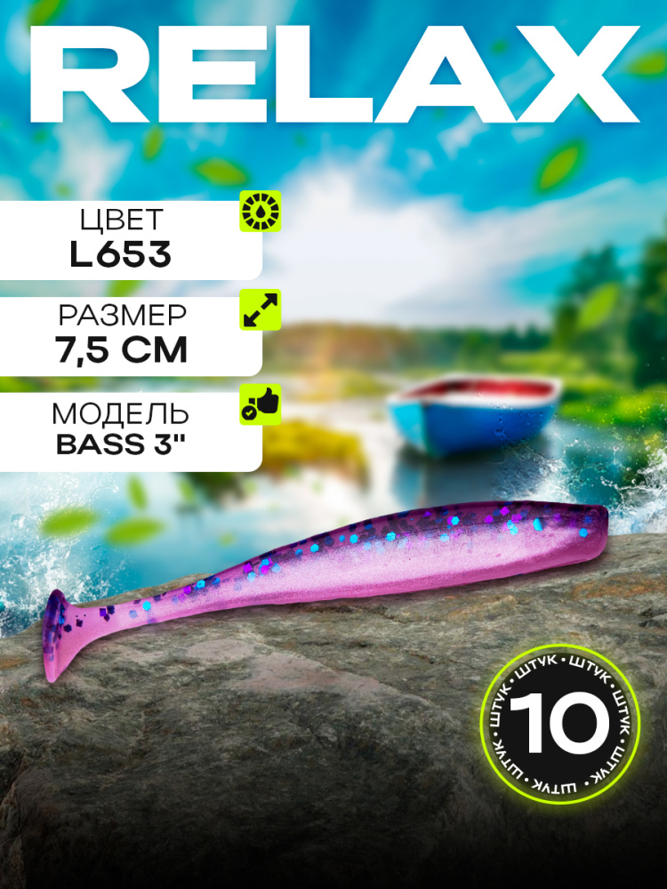 Виброхвосты Relax Bass 2.5" 7см цвет S175 (лиловый, синие блестки) (10шт) (BAS25)