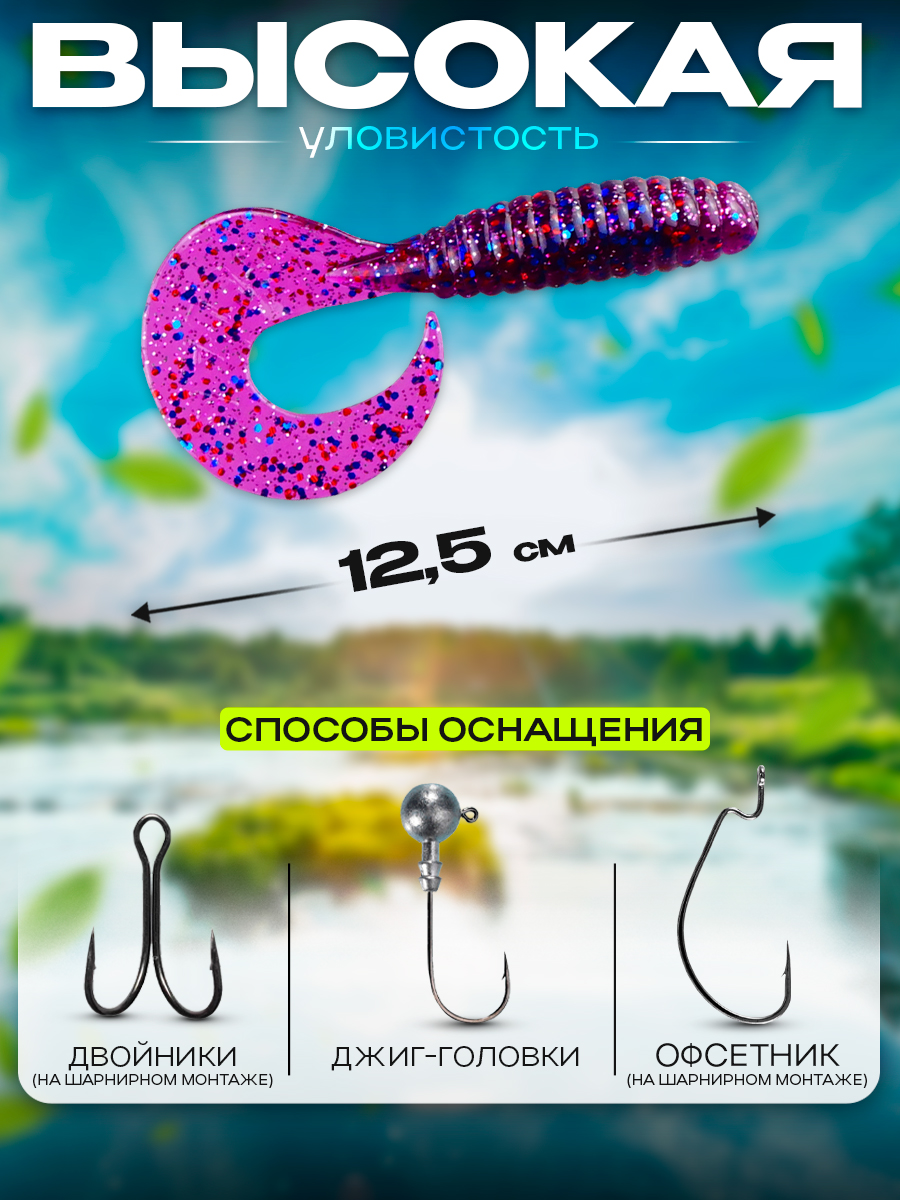Твистеры Relax 5" 12,5см цвет TS261 (фиолетовый, красные и синие блестки) (10шт) (VR5)