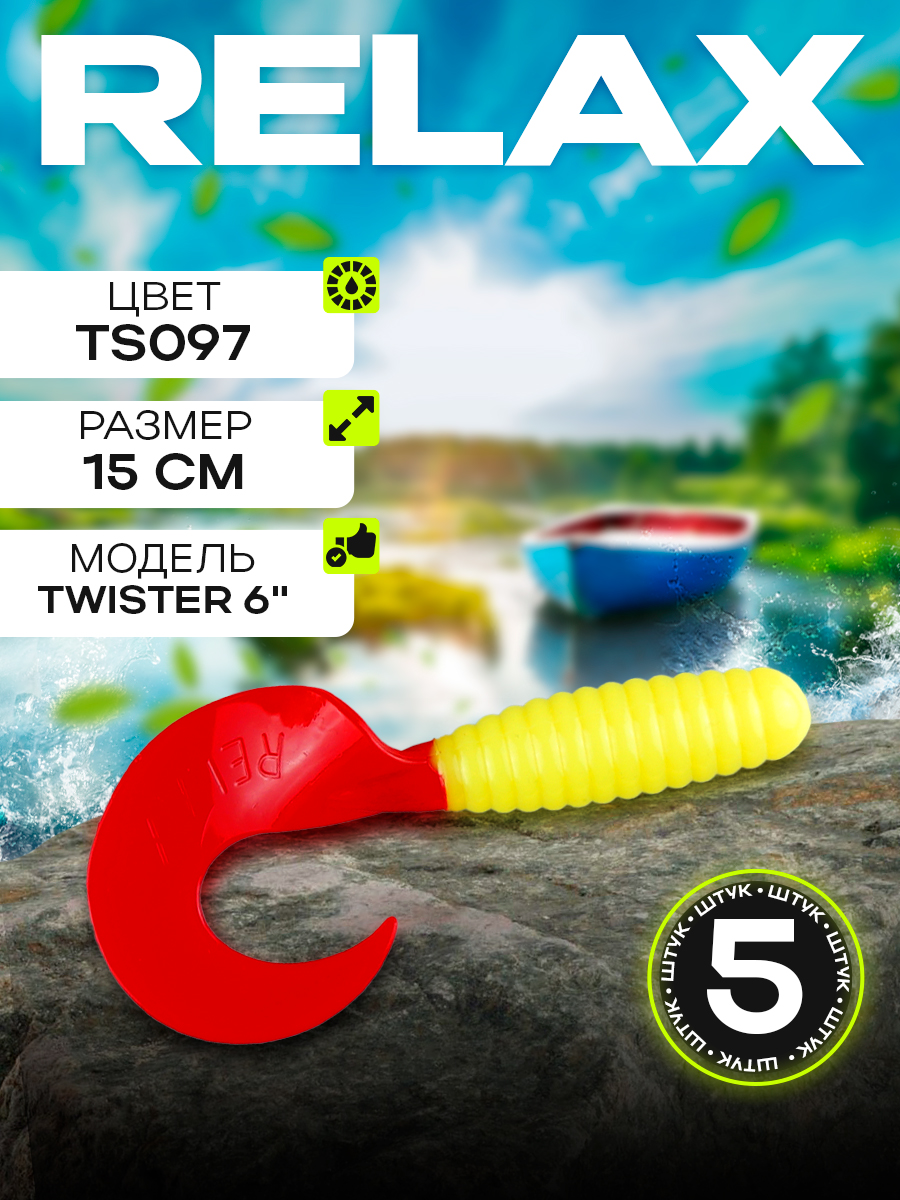 Твистеры Relax 6" 15см цвет TS097 (салатовый, красный) (5шт) (VR6)