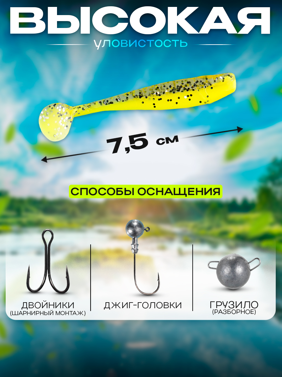 Виброхвосты Relax Kingshad 3" 7,5см цвет L161 (желтый, с блестками) (10шт) (KS3)