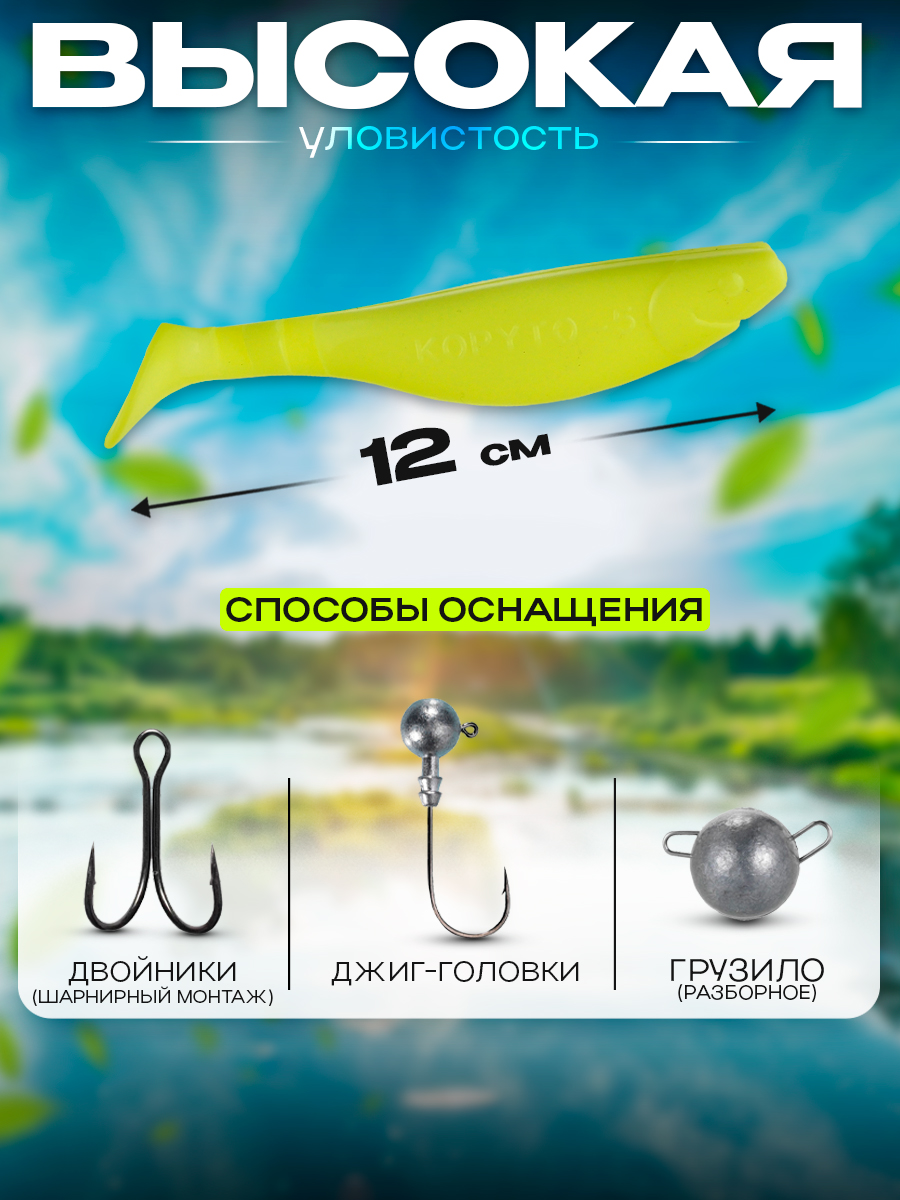 Виброхвосты Relax Kopyto BLS 5" 12см цвет S055 (желтый) (5шт) (BLS5)