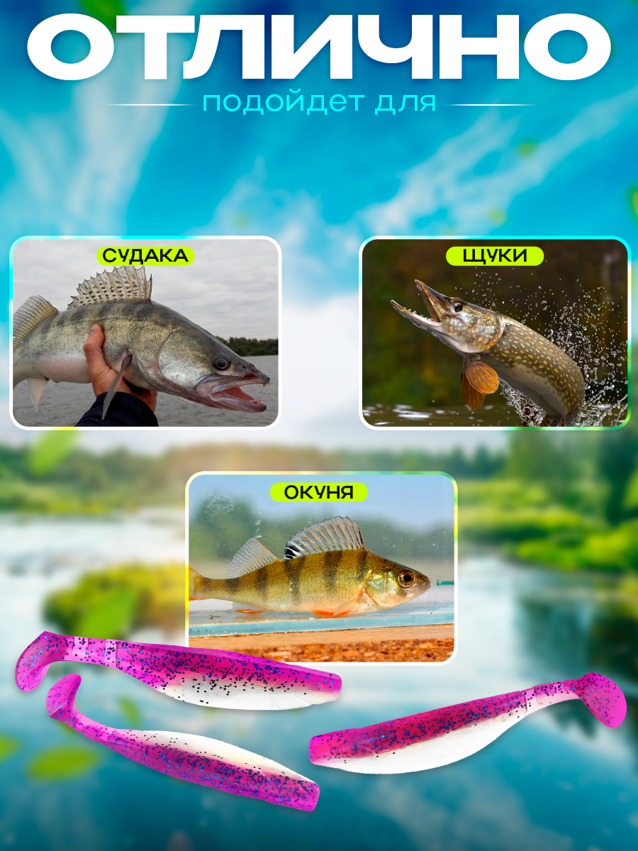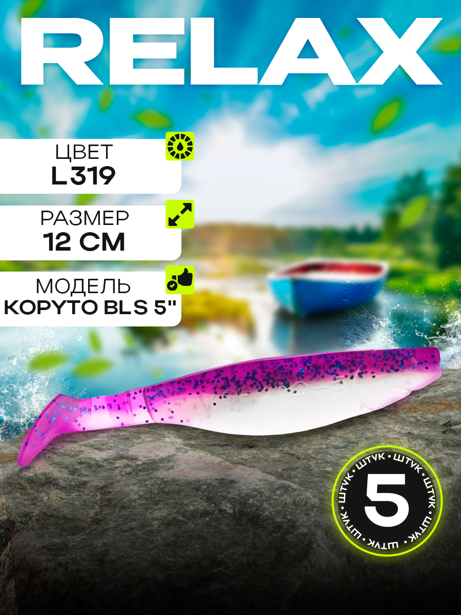 Виброхвосты Relax Kopyto BLS 5" 12см цвет L319 (фиолетовый, прозрачный, синие блестки) (5шт) (BLS5)