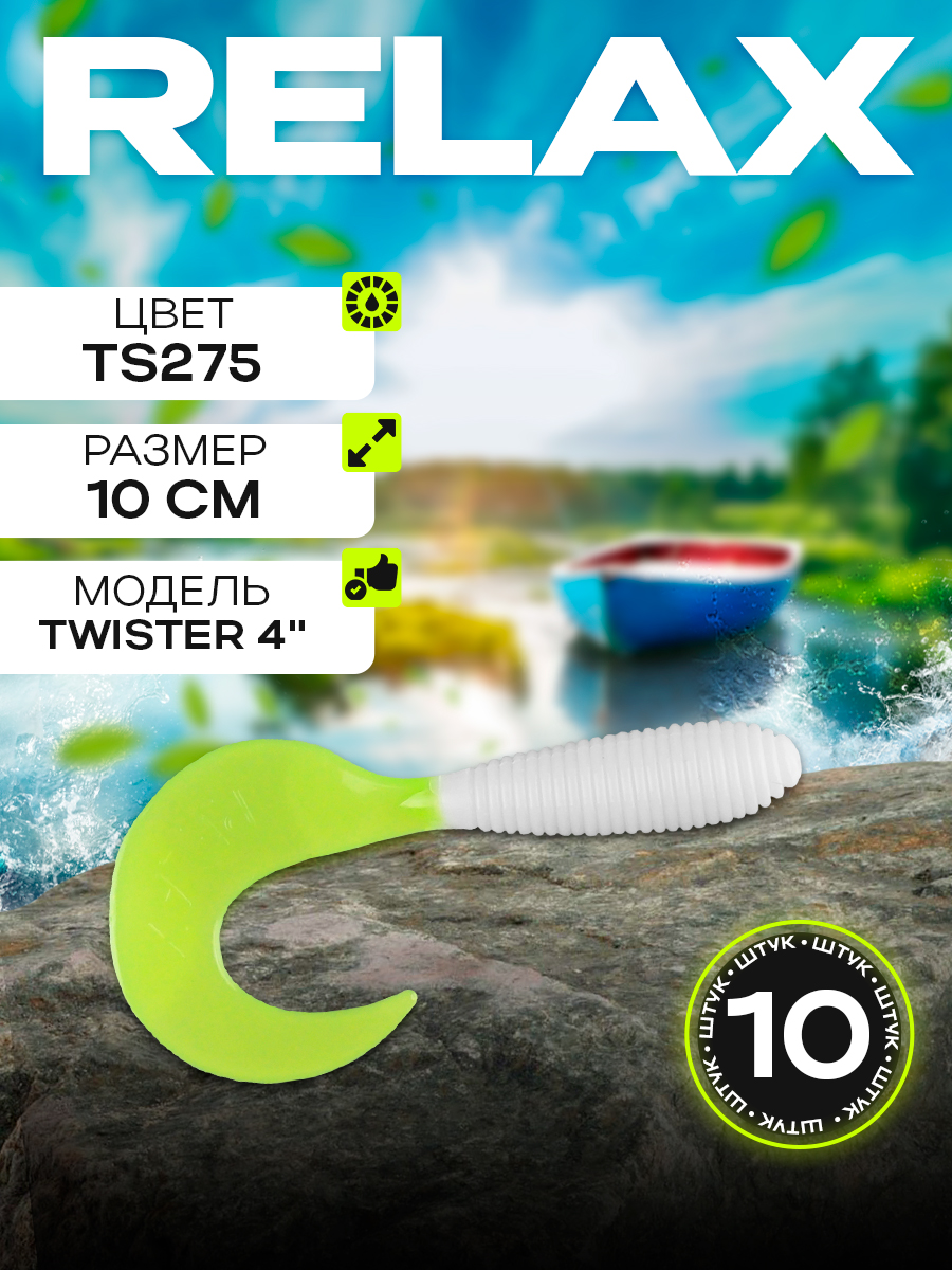 Твистеры Relax 4" 10см цвет TS275 (белый, зеленый) (10шт) (VR4)