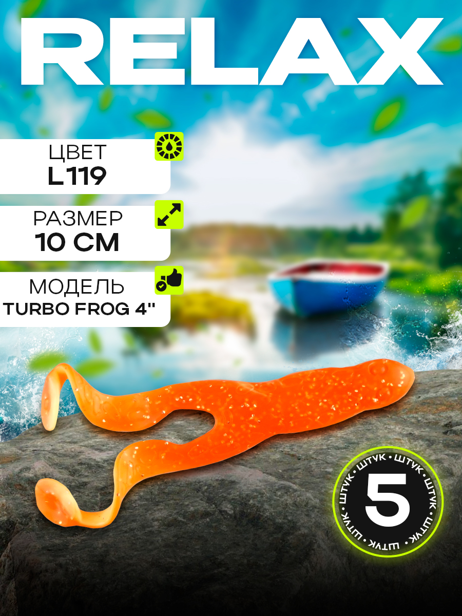 Приманки Relax Turbo Frog (лягушка) 4" 10см цвет L119 (оранжевый, с блестками) (5шт) (TF4)