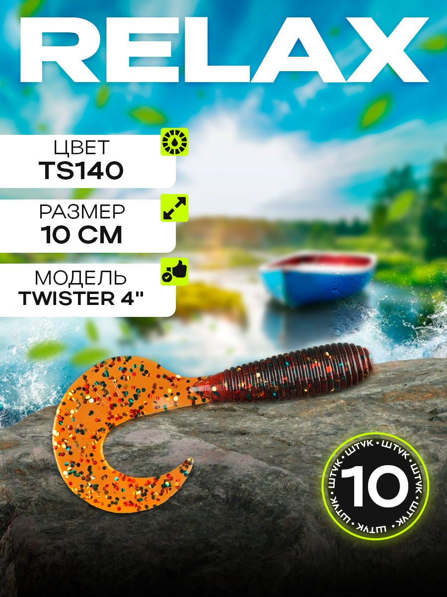 Твистеры Relax 4" 10см цвет TS140 (машинное масло, с блестками) (10шт) (VR4)