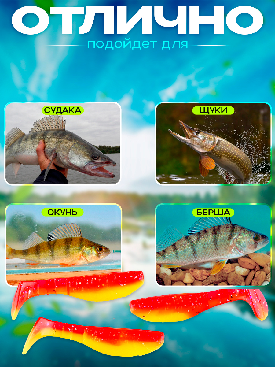 Виброхвосты Relax Kopyto BLS 3" 7,5см цвет L147 (желтый, красный, с блестками) (10шт) (BLS3)
