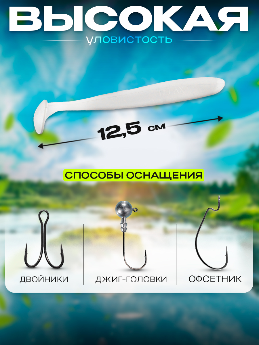 Виброхвосты Relax Bass 5" 12,5см цвет S001 (белый) (5шт) (BAS5)