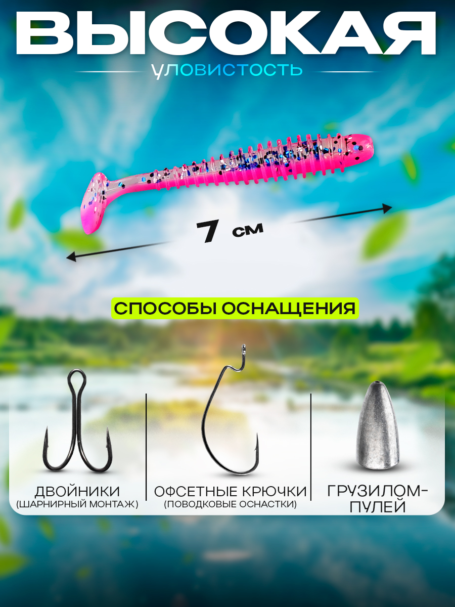 Виброхвосты Relax Texas 2.5" 7см цвет L508 (розовый, синие блестки) (10шт) (TX25)