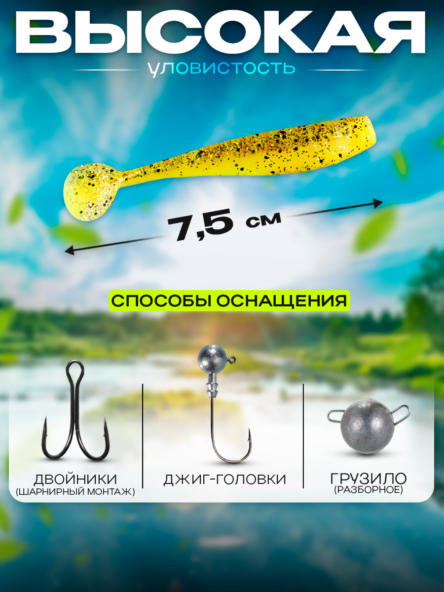 Виброхвосты Relax Kingshad 3" 7,5см цвет L198 (желтый, с блестками) (10шт) (KS3)