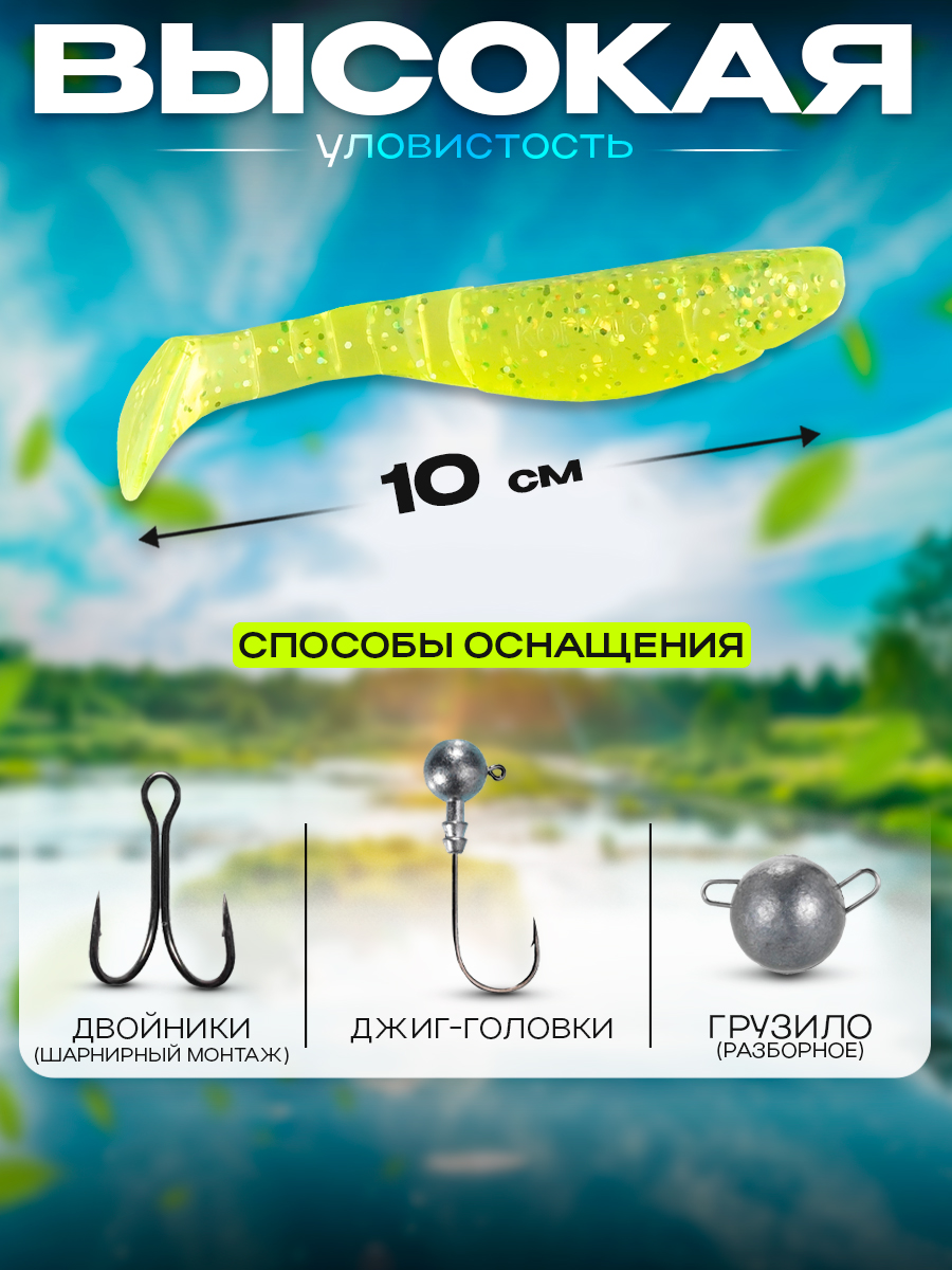 Виброхвосты Relax Kopyto BLS 4L" 10см цвет S203 (желтый, прозрачный, с блестками) (10шт) (BLS4L)