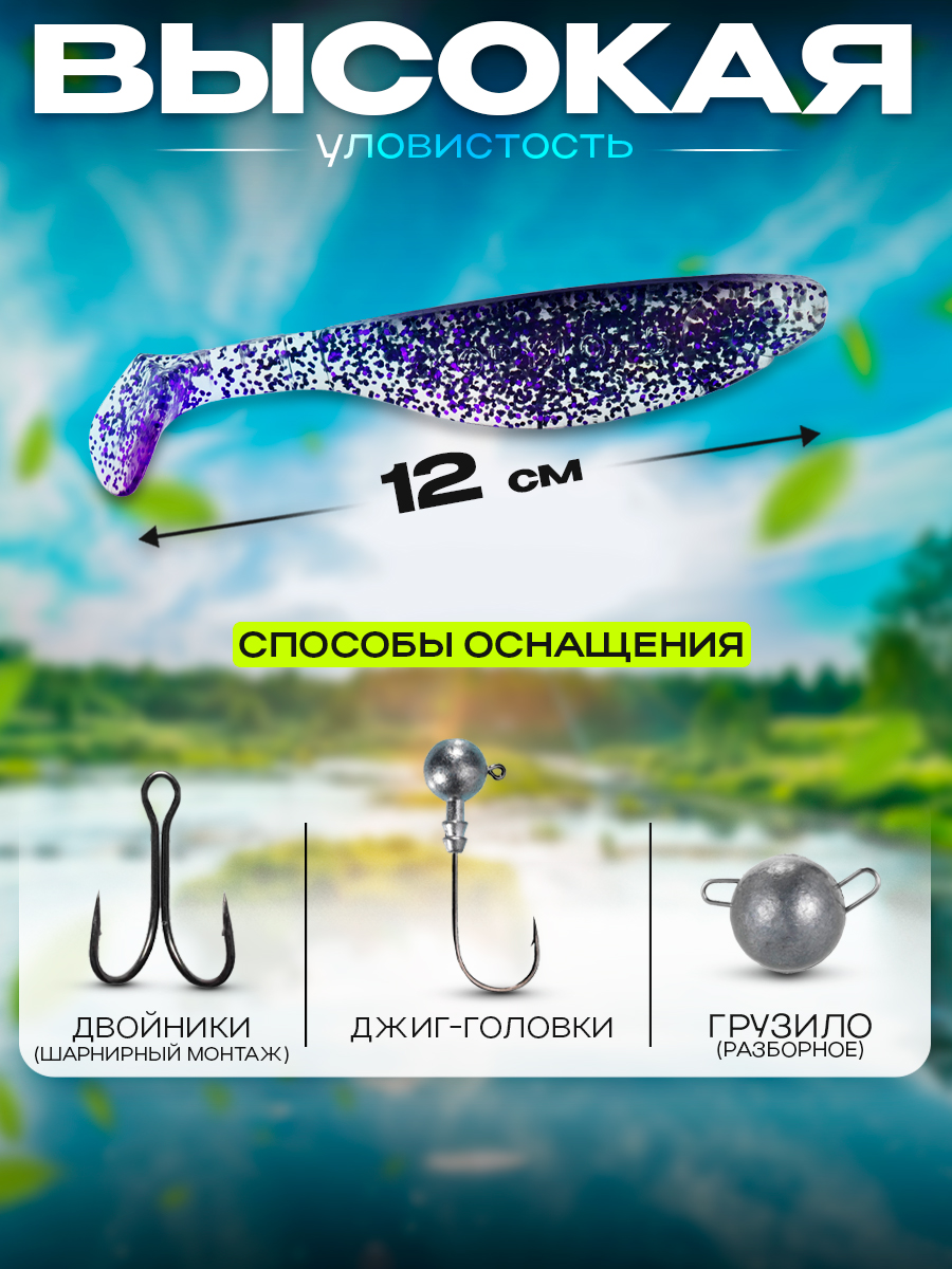 Виброхвосты Relax Kopyto BLS 5" 12см цвет S355 (прозрачный, фиолетовые блестки) (5шт) (BLS5)