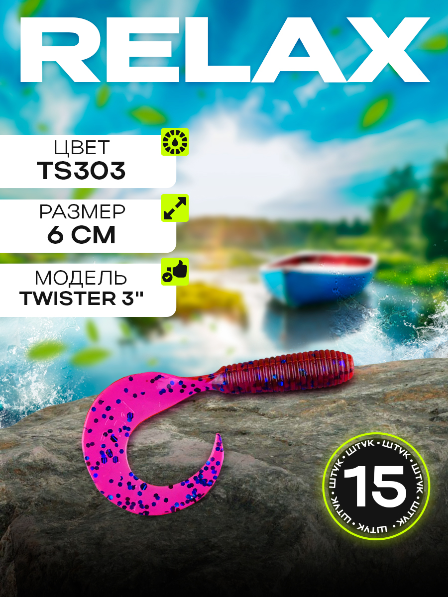 Твистеры Relax 3" 6см цвет TS303 (фиолетовый, синие блестки) (15шт) (VR3)