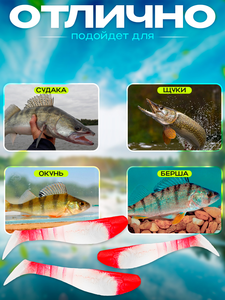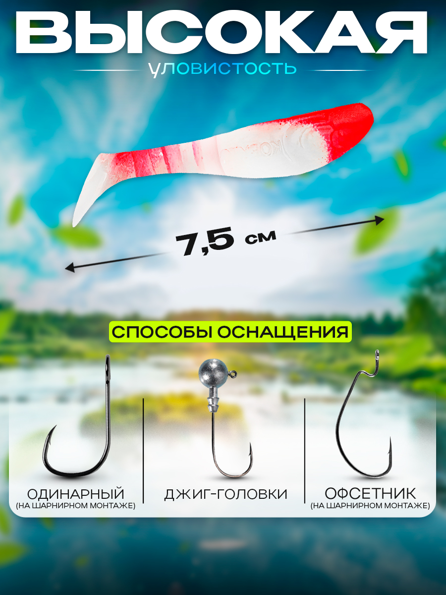 Виброхвосты Relax Kopyto BLS 3" 7,5см цвет S003 (белый, красный) (10шт) (BLS3)