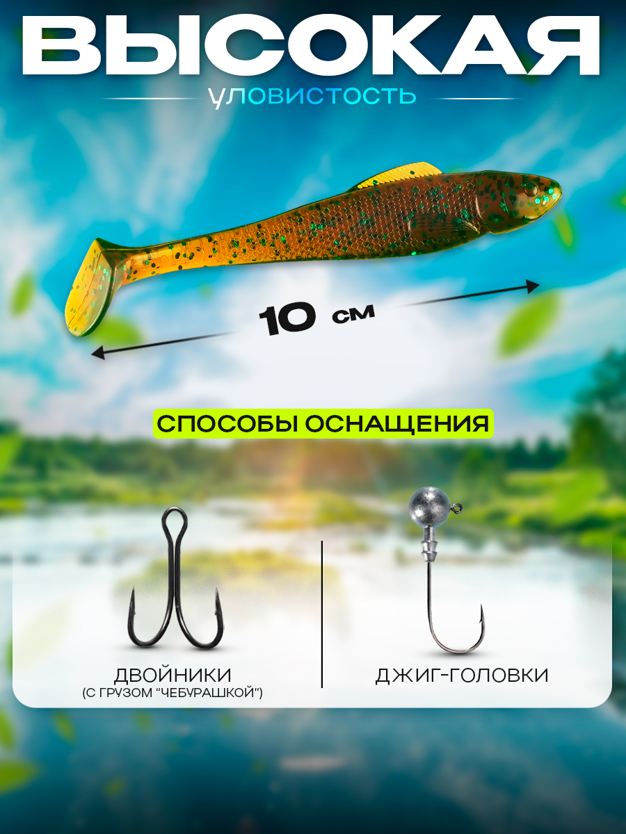 Эта серия выполнена из материала с повышенной мягкостью, что способствует естественной игре. Приманка подходит для классической джиг-головки или двойника с "чебурашкой". На нее хорошо клюют окуни и небольшие щуки.