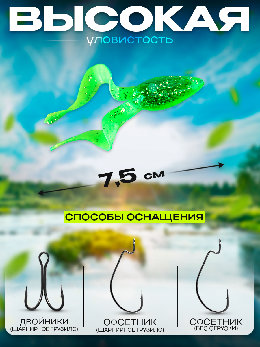 Приманки Relax Banjo Frog (лягушка) 3" 7,5см цвет L030 (зеленый, с блестками) (5шт) (BF3)