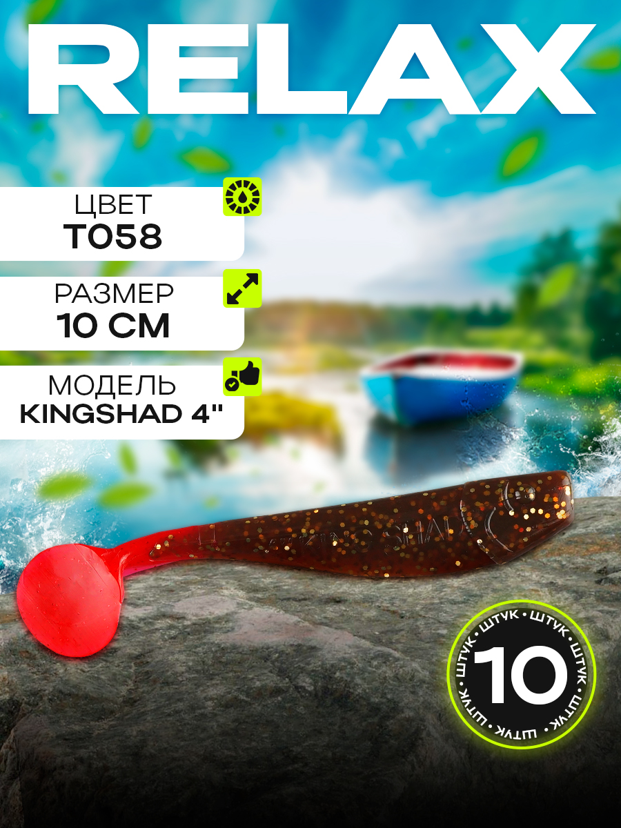 Виброхвосты Relax Kingshad 4" 10см цвет T058 (красный, болотный, с блестками) (10шт) (KS4)